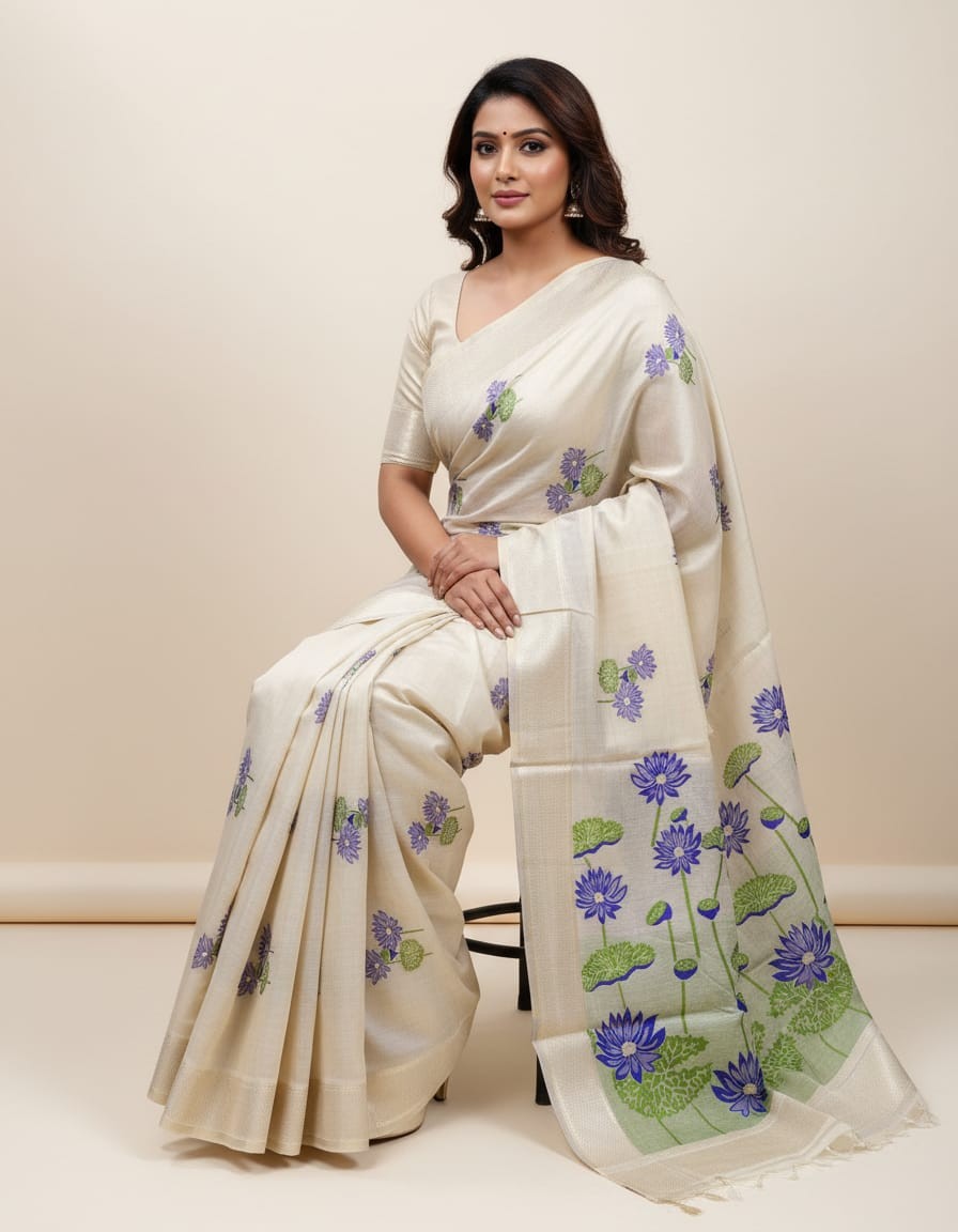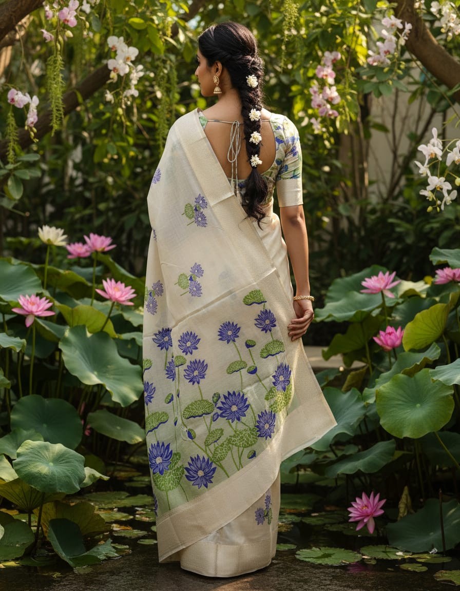 Embrace the beauty of nature with our Blue Lily Grove Muga Jamdani Saree. Crafted with the finest Jamdani weaving technique, this saree features intricate handwoven floral motifs that add a touch of artistry and grace. The vibrant blue hue, inspired by the freshness of blooming foliage, offers a refreshing and lively look, making it perfect for festive celebrations, weddings, or cultural events. The delicate floral design, combined with the lightweight yet luxurious fabric, ensures that you make a statement of elegance and sophistication.