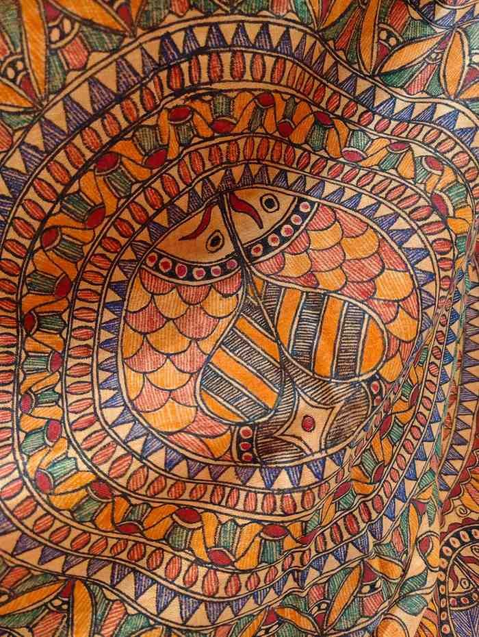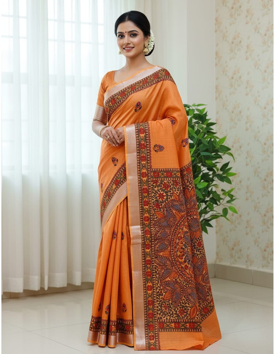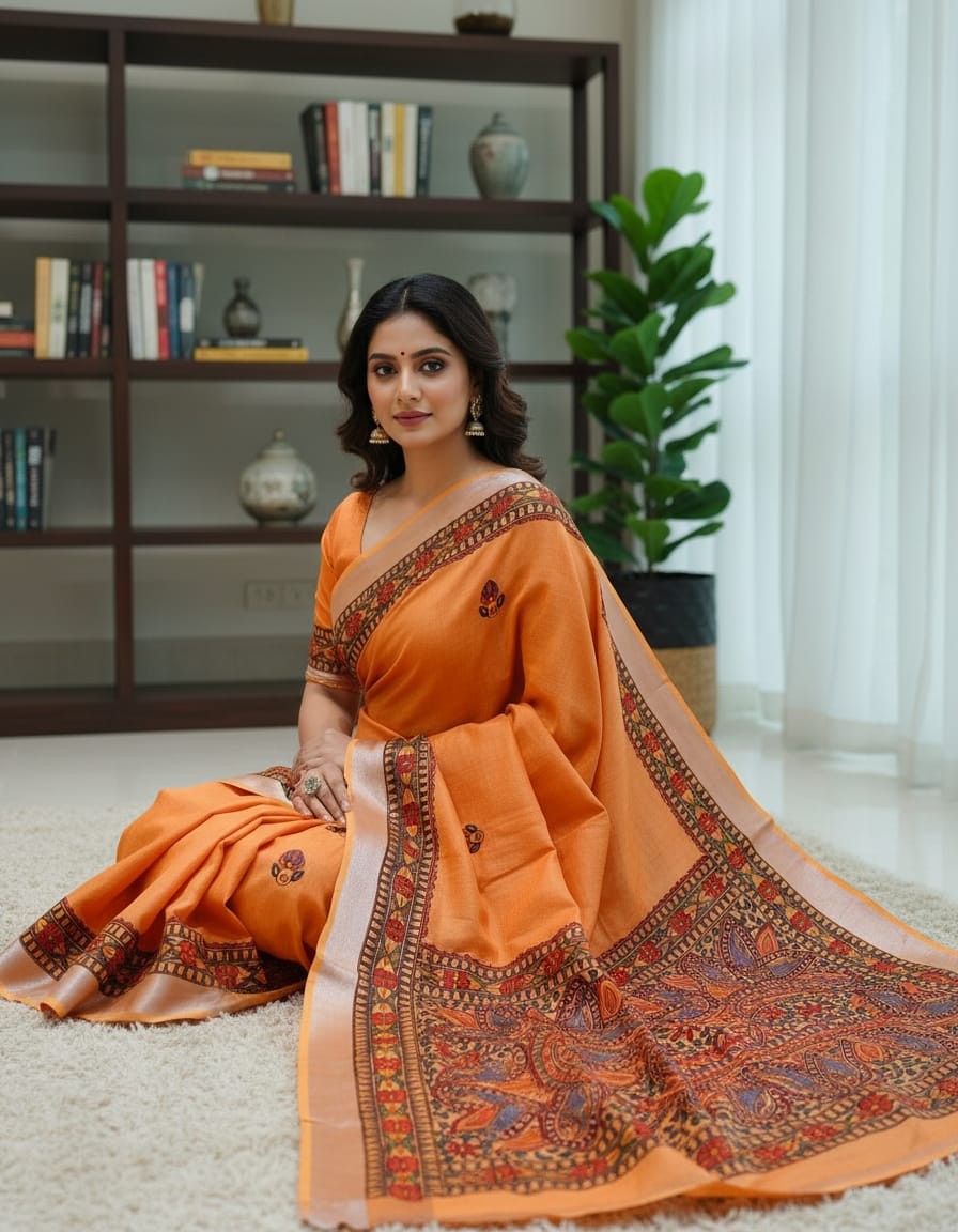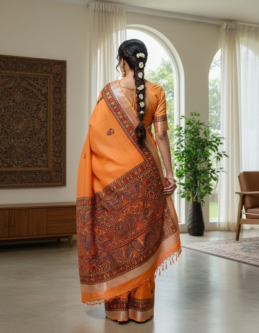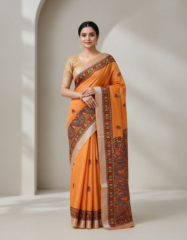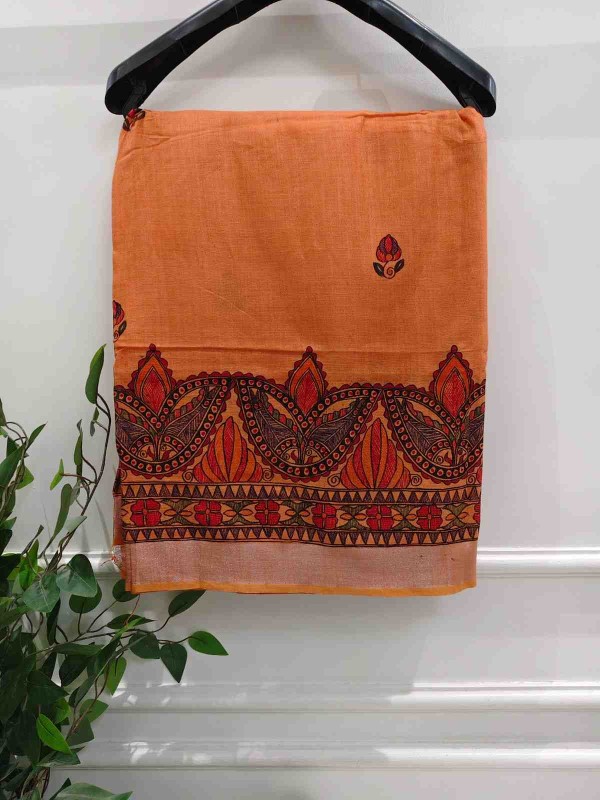 Agnipankh Darak Orange Handpainted Madhubani Blend Saree