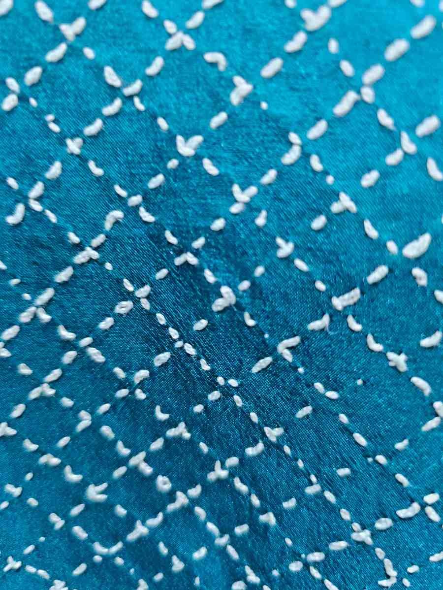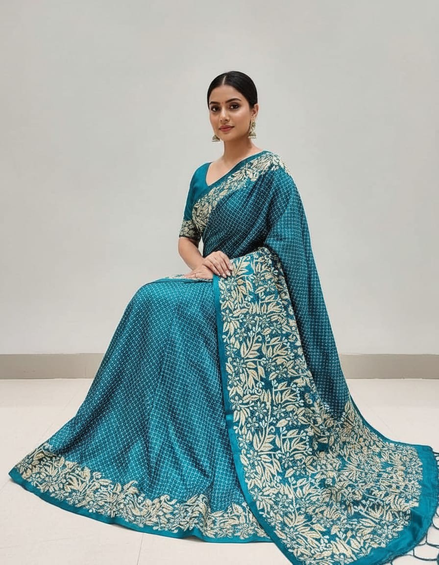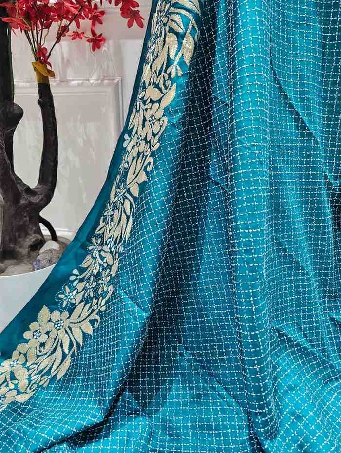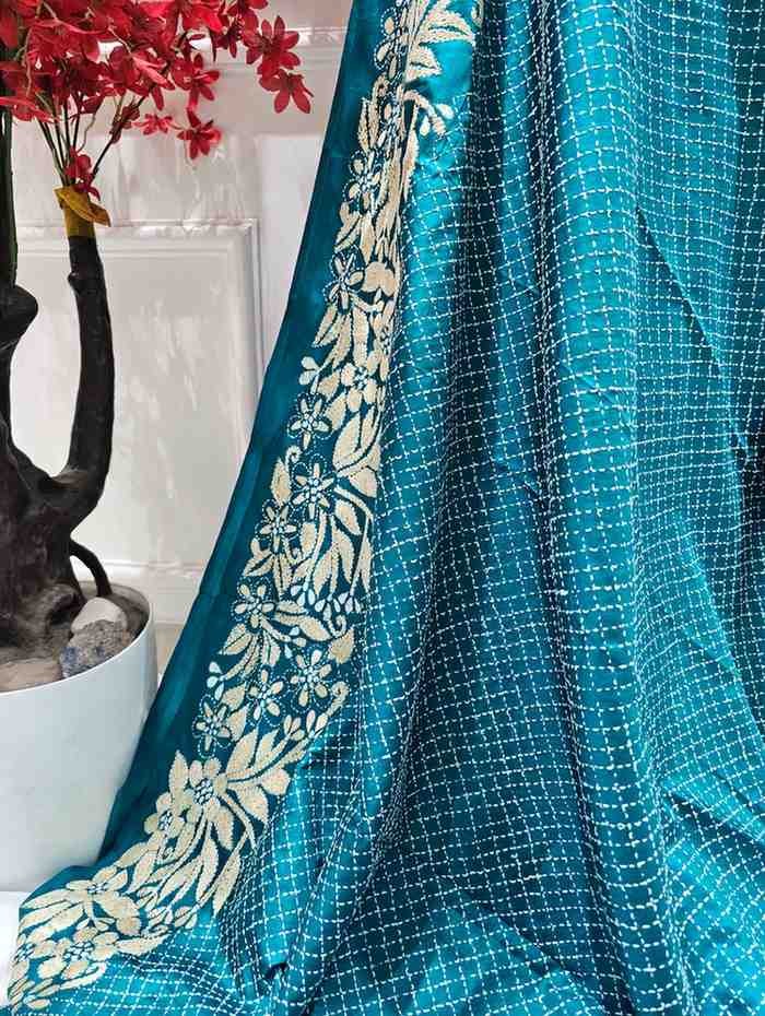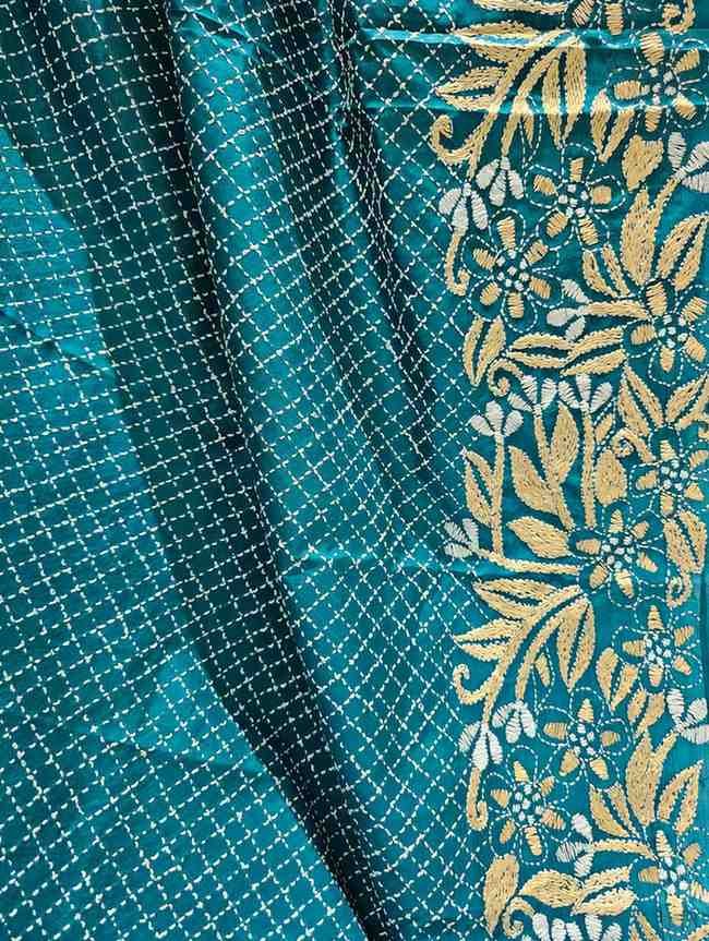 Bangalore Pure Silk Kantha Saree – Greenish Blue