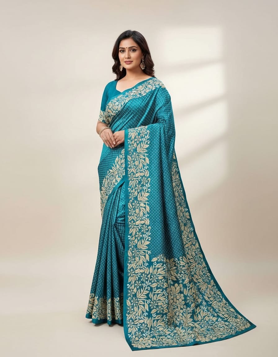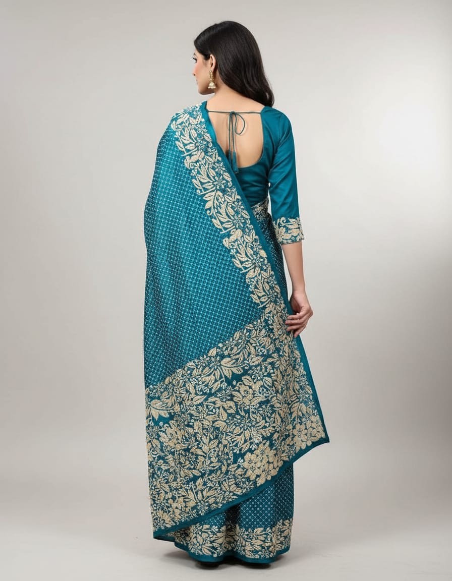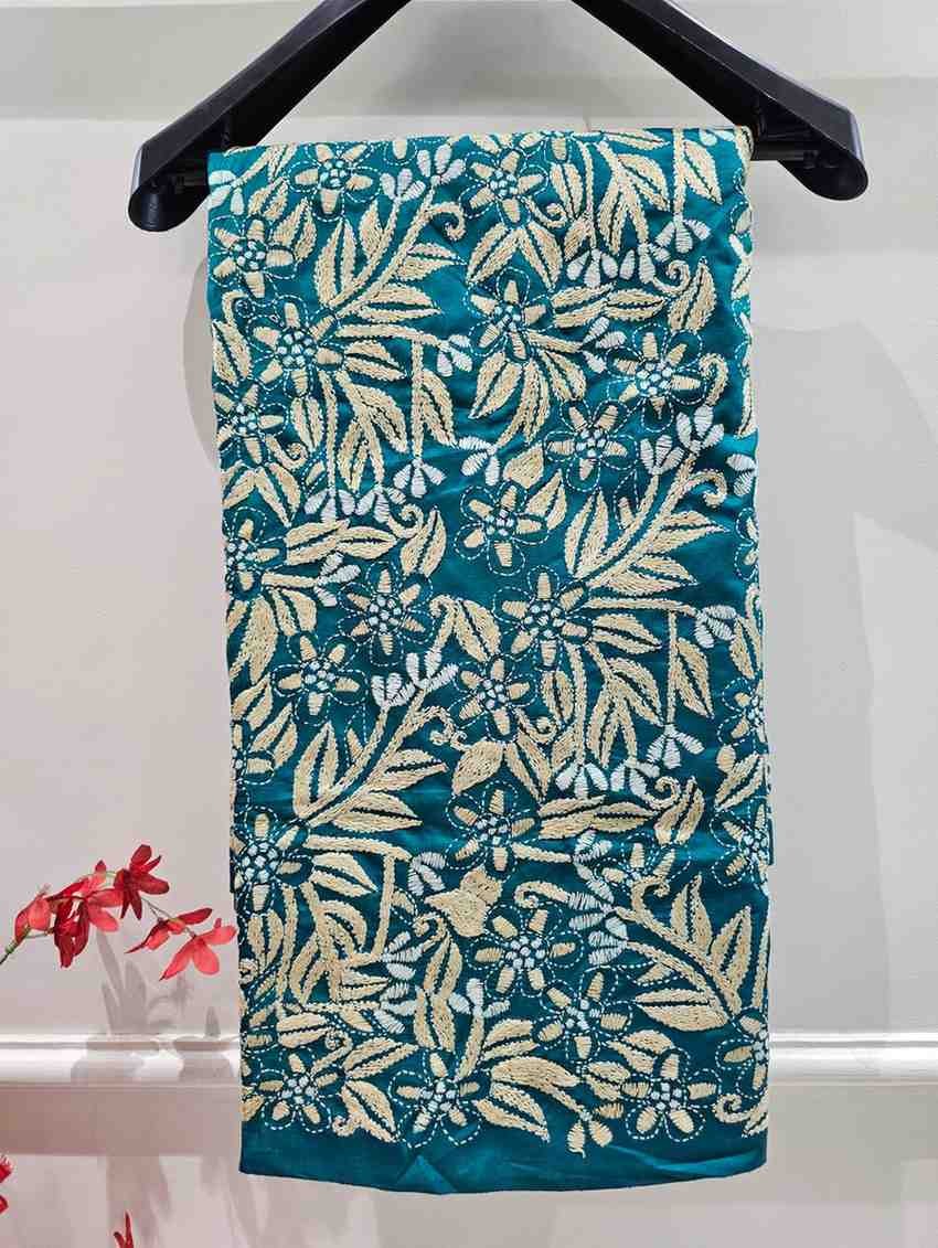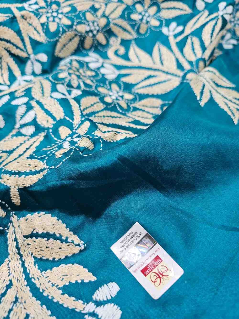 Bangalore Pure Silk Kantha Saree – Greenish Blue