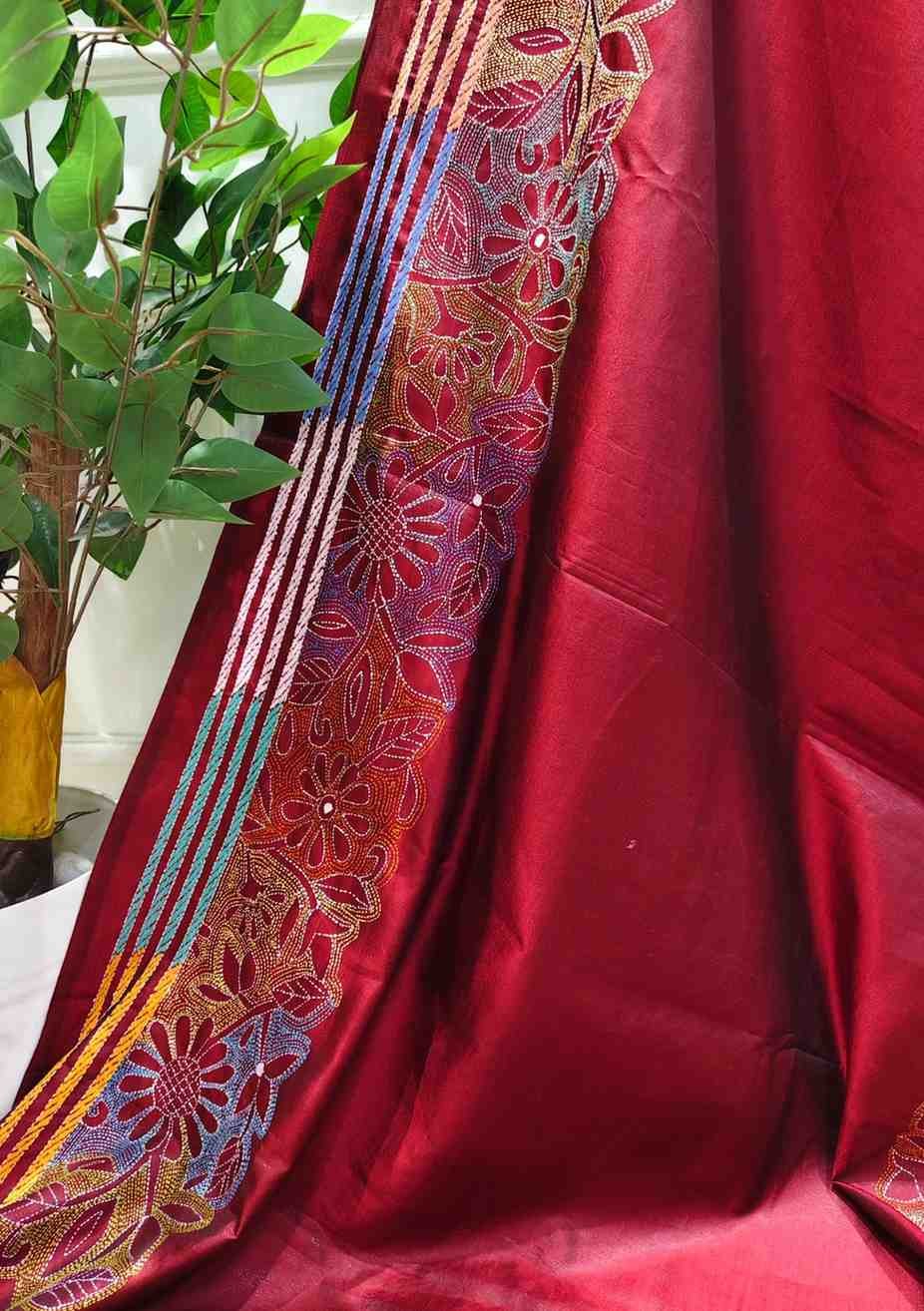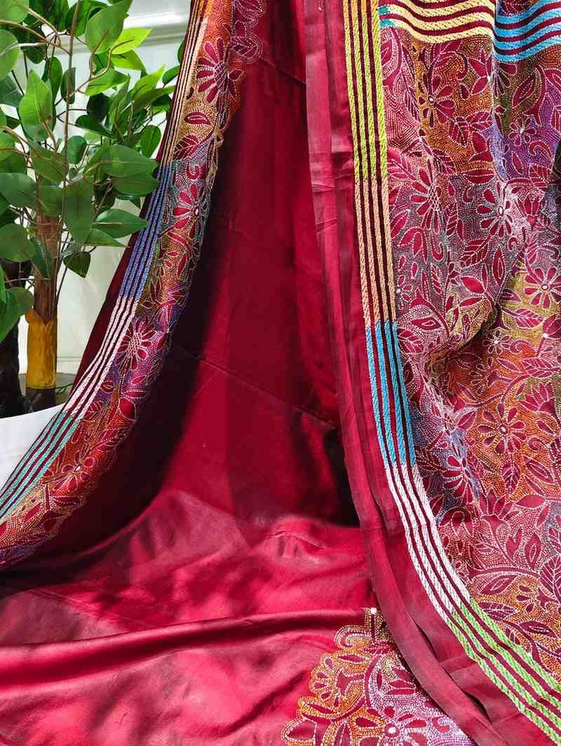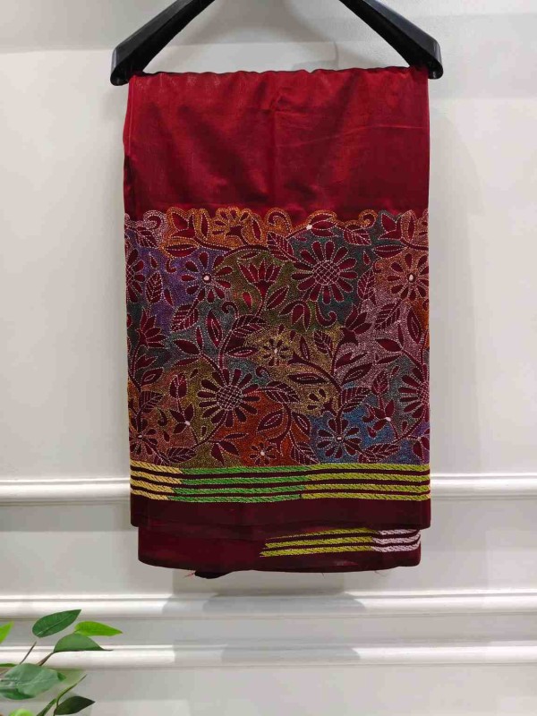 Artisanal Craft: 100% hand-embroidered; no two sarees are alike