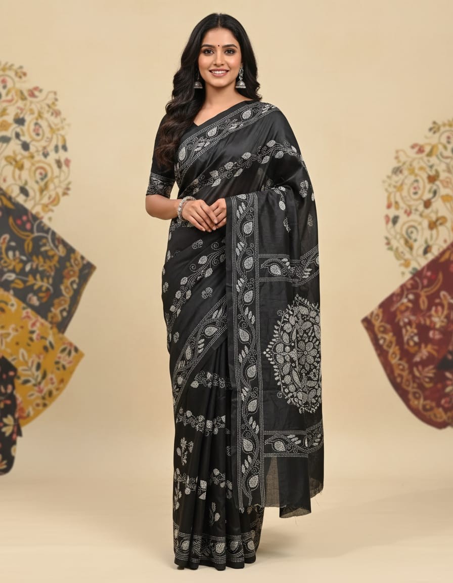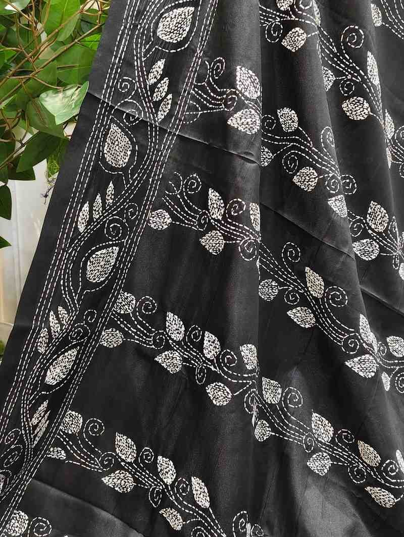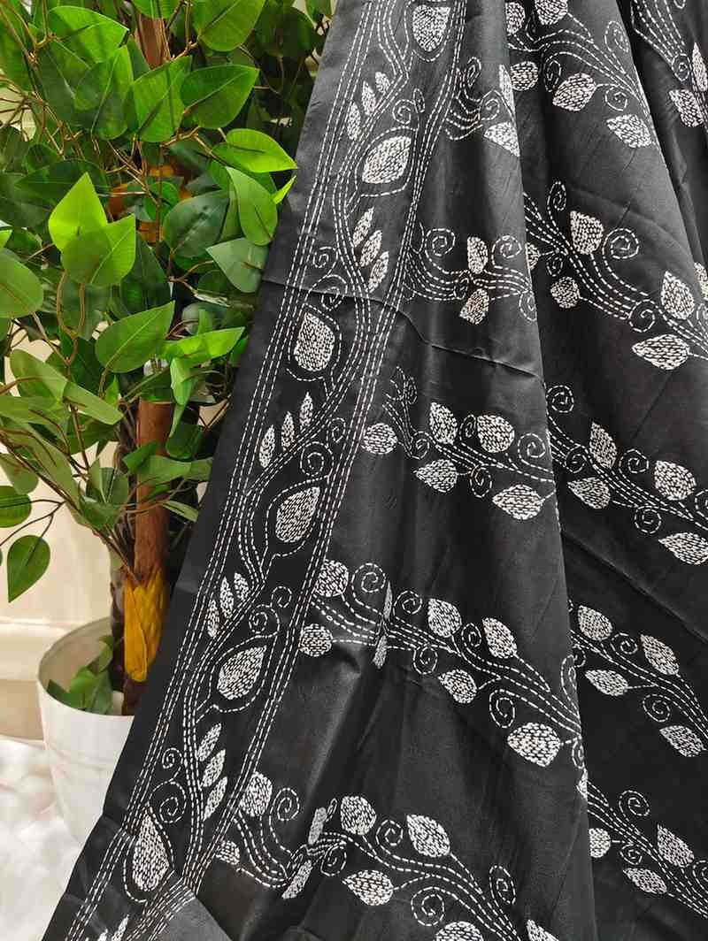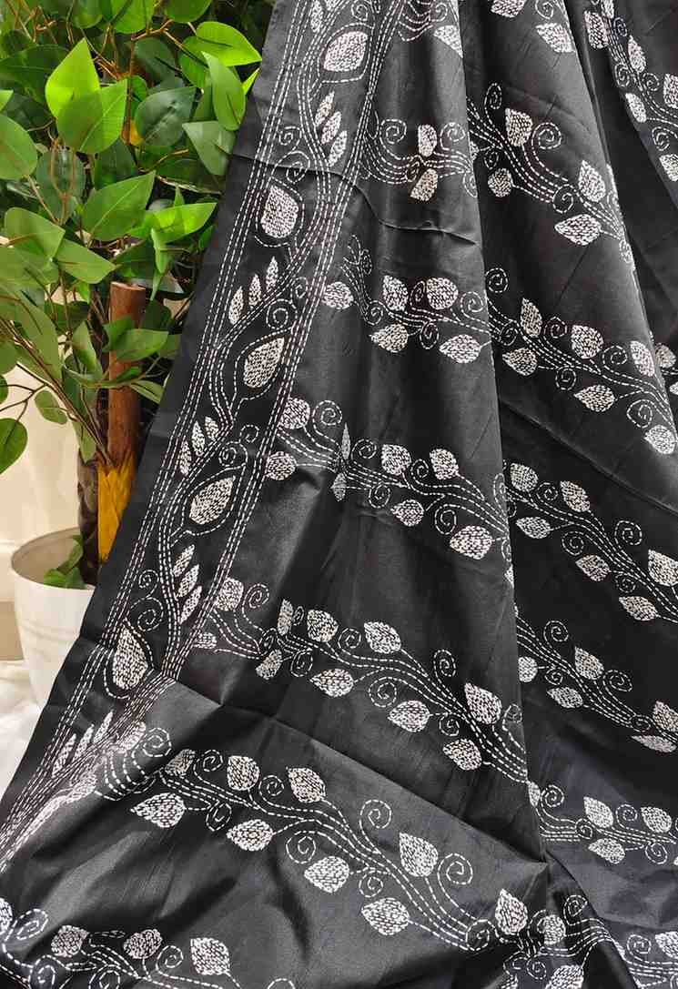 Celebrate timeless craftsmanship with this exquisite Kantha saree, a traditional form of folk embroidery from West Bengal, India. Each saree is a piece of wearable art, hand-stitched using a running stitch technique that has been passed down for generations.