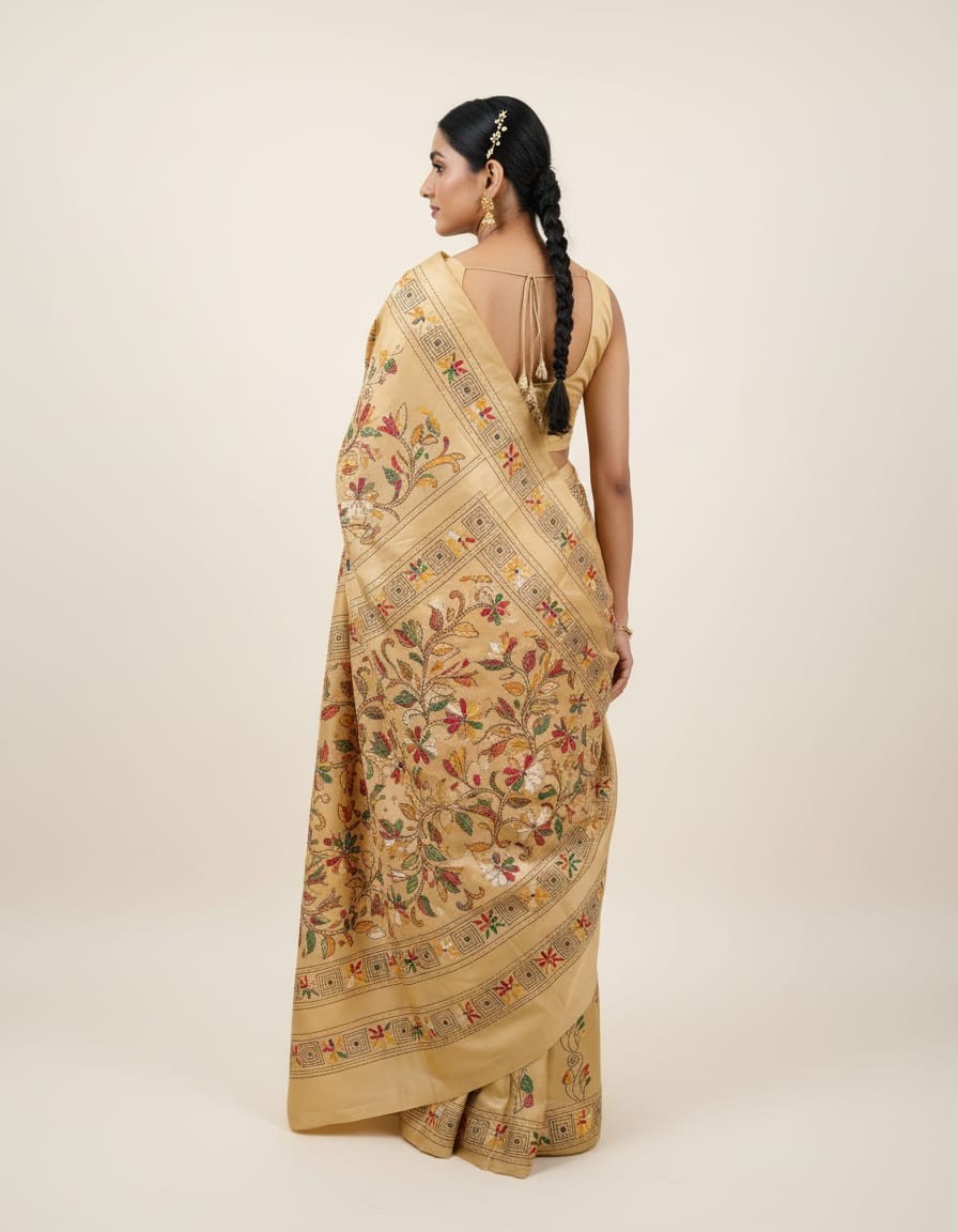 Artisanal Craft: 100% hand-embroidered; no two sarees are alike