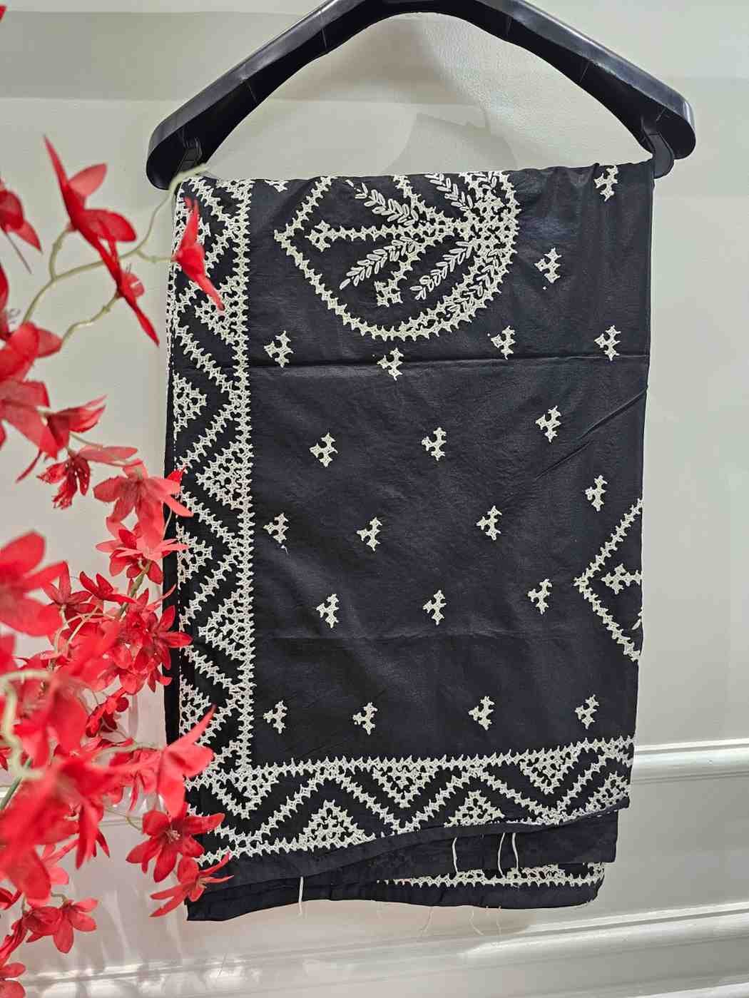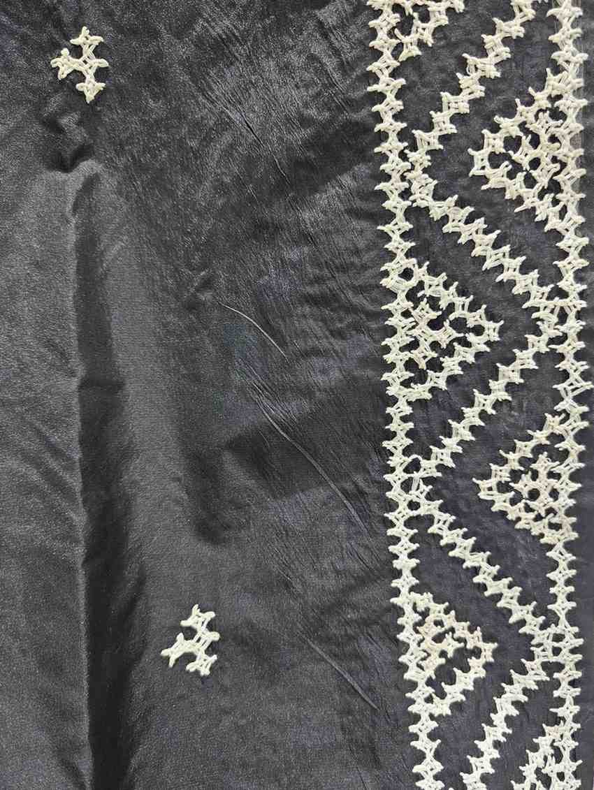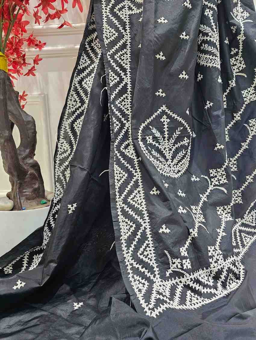 Experience timeless elegance with the Bangalore Silk Kantha Saree - Deep Black. The rich deep black base of this saree sets the stage for exquisite Kantha embroidery, creating a dramatic yet refined effect. The delicate hand-stitched Kantha motifs, often in contrasting threads, bring texture and a unique depth to the fabric, enhancing its luxurious feel. This saree is perfect for evening events, weddings, or festive occasions, where you want to make a bold yet elegant statement. The classic black hue paired with the intricate craftsmanship ensures you stand out in the most sophisticated way.