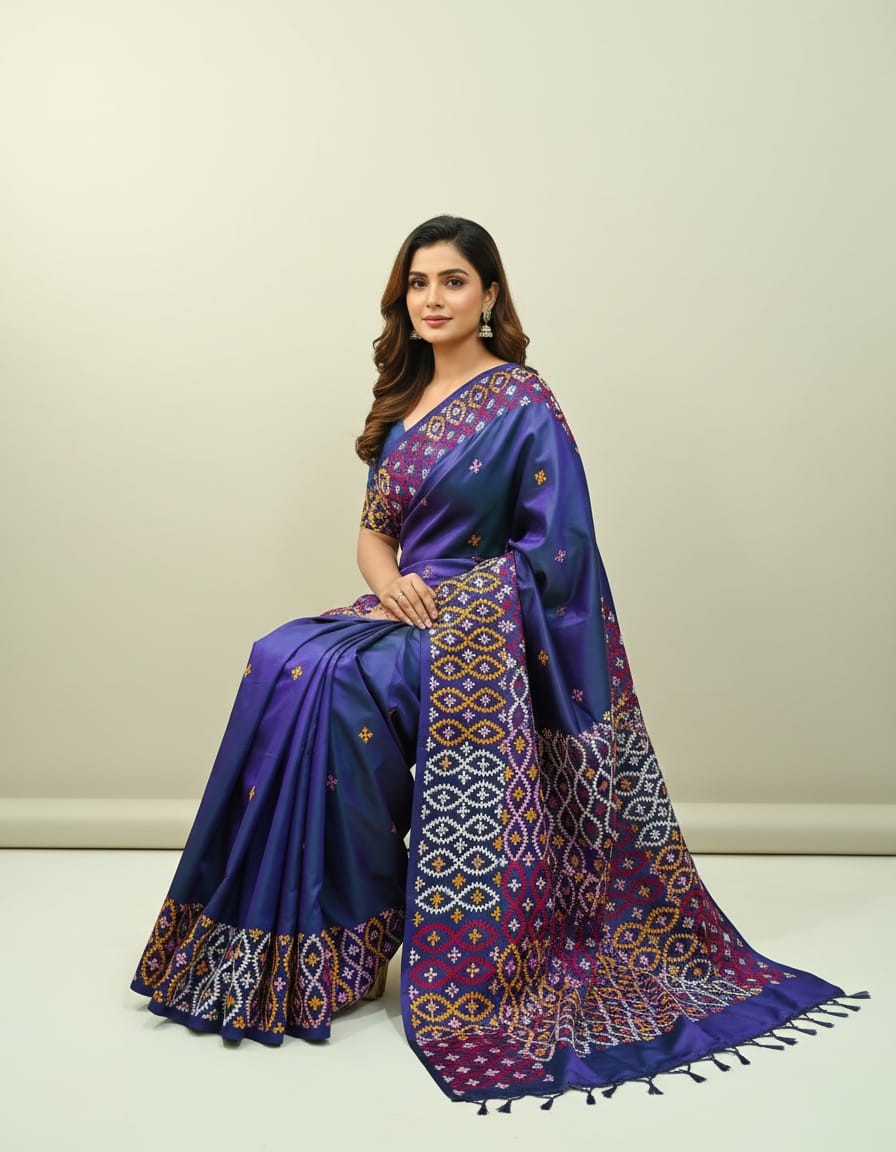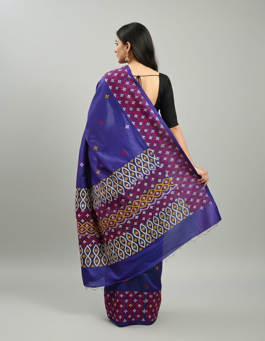 Celebrate timeless craftsmanship with this exquisite Kantha saree, a traditional form of folk embroidery from West Bengal, India. Each saree is a piece of wearable art, hand-stitched using a running stitch technique that has been passed down for generations.