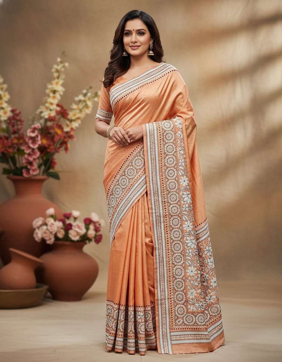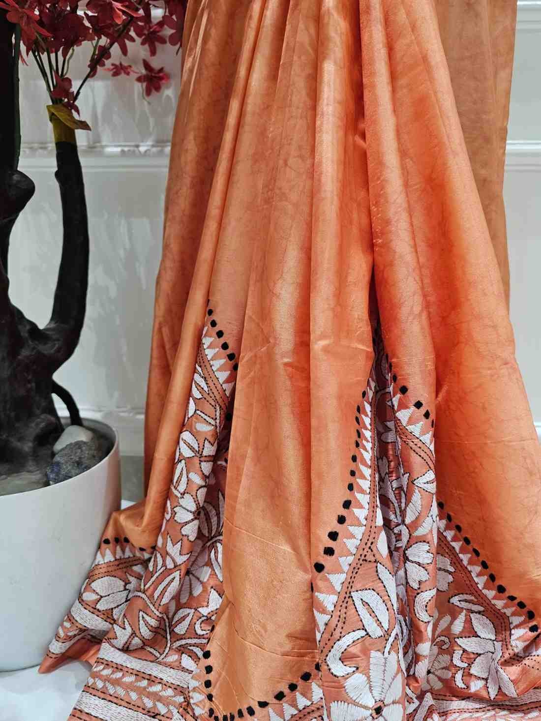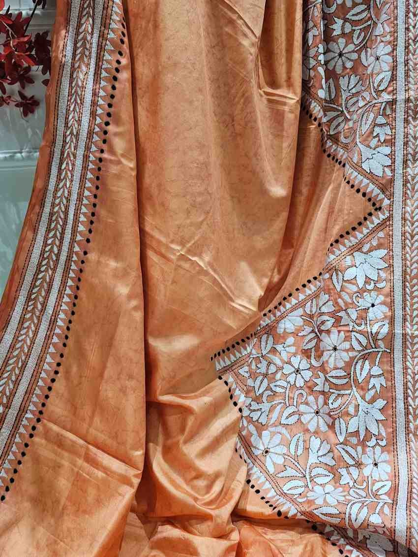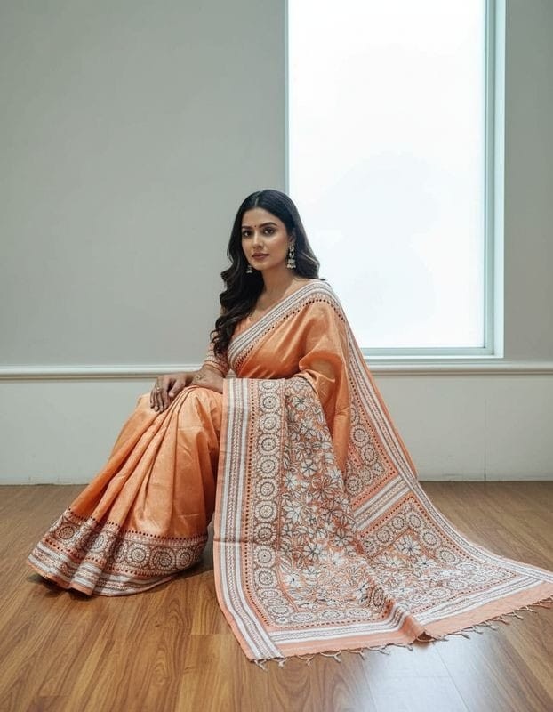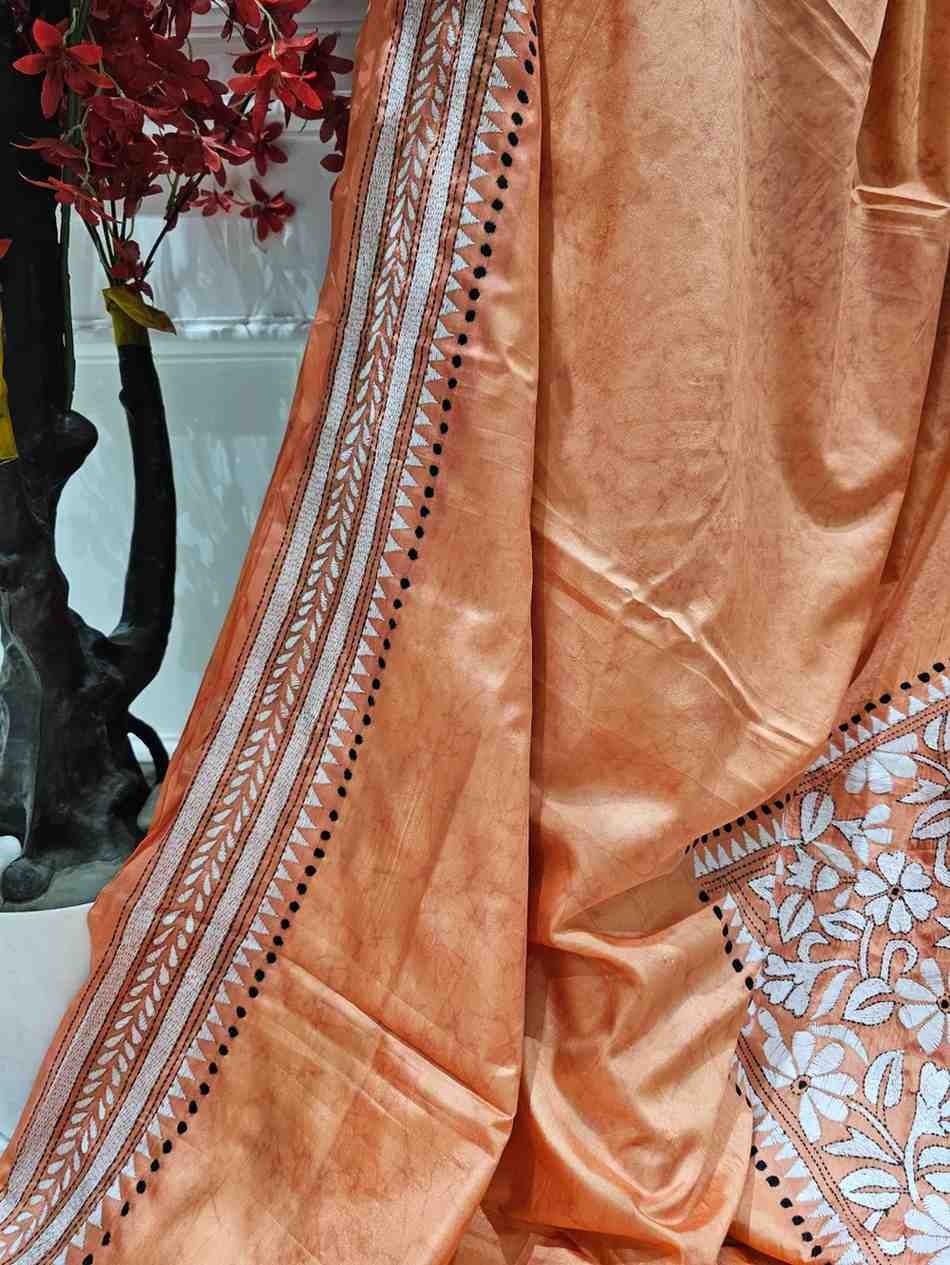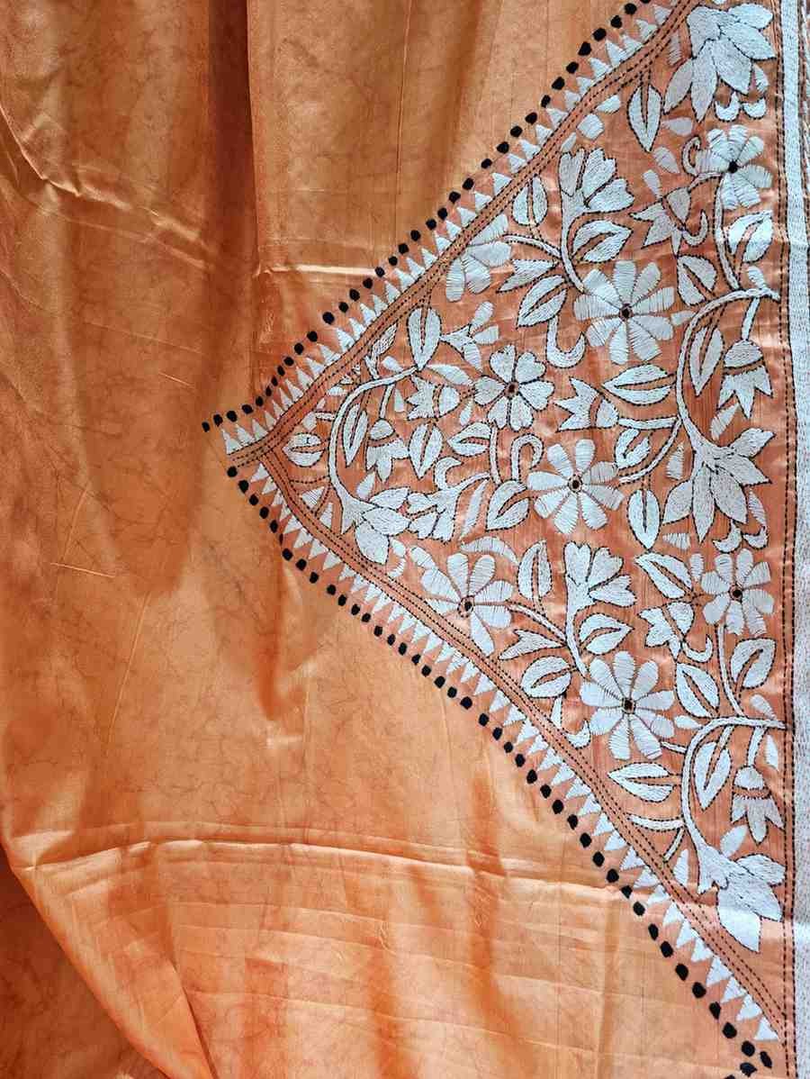 Bangalore Silk Kantha Saree – Peach
