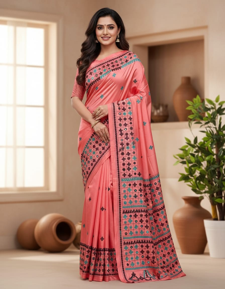 Artisanal Craft: 100% hand-embroidered; no two sarees are alike