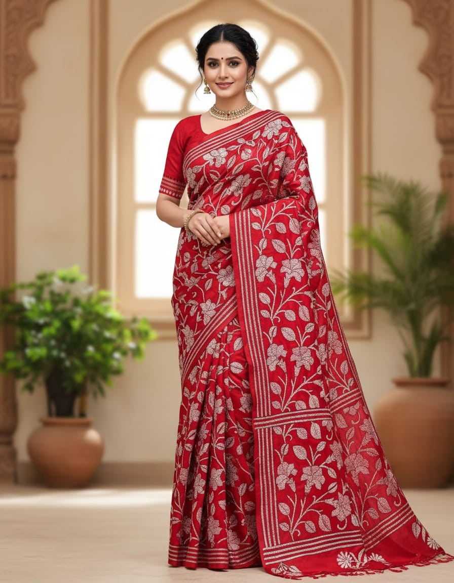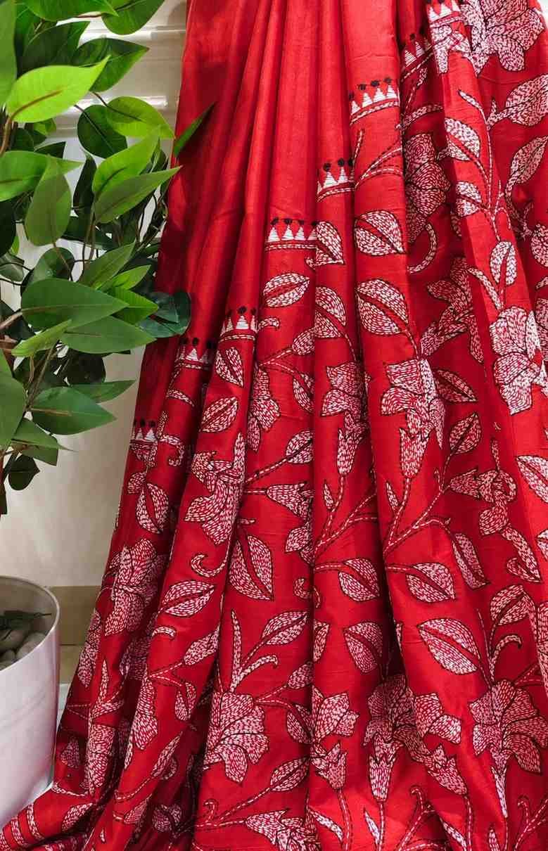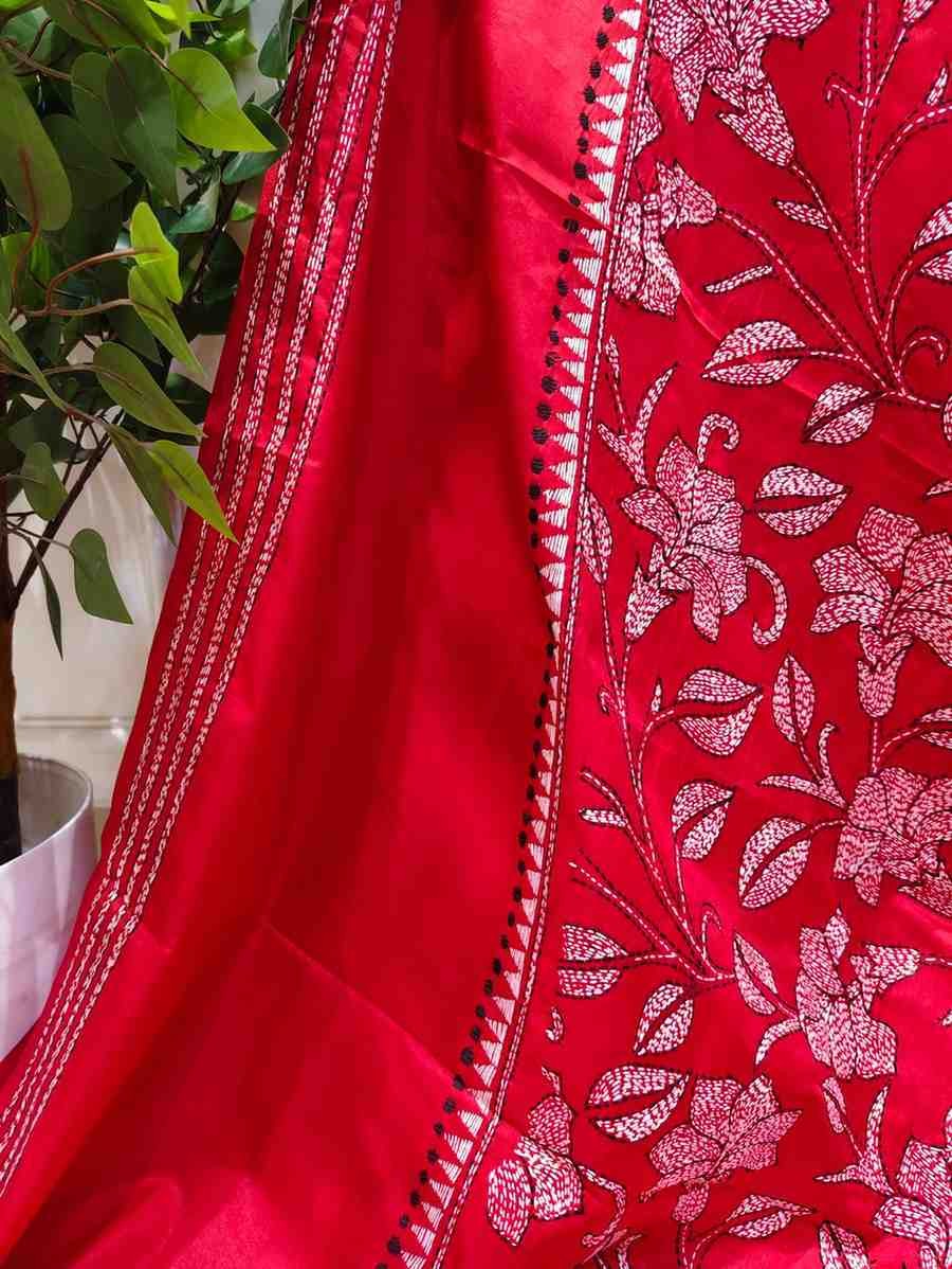 Celebrate timeless craftsmanship with this exquisite Kantha saree, a traditional form of folk embroidery from West Bengal, India. Each saree is a piece of wearable art, hand-stitched using a running stitch technique that has been passed down for generations.