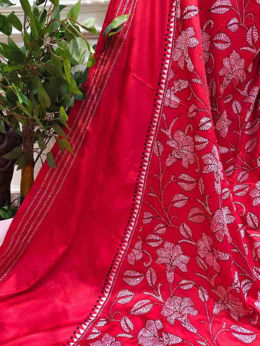 Artisanal Craft: 100% hand-embroidered; no two sarees are alike