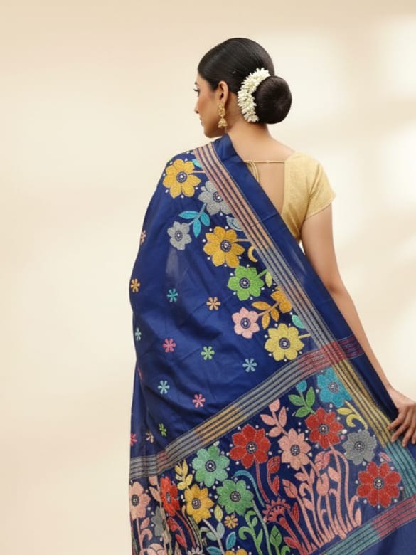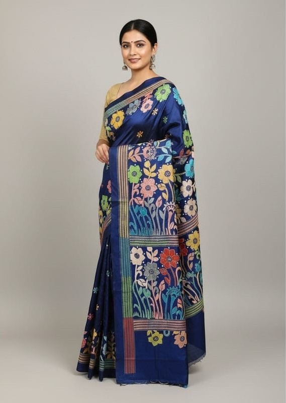 Blue Serenity Bangalore Silk Kantha Saree
