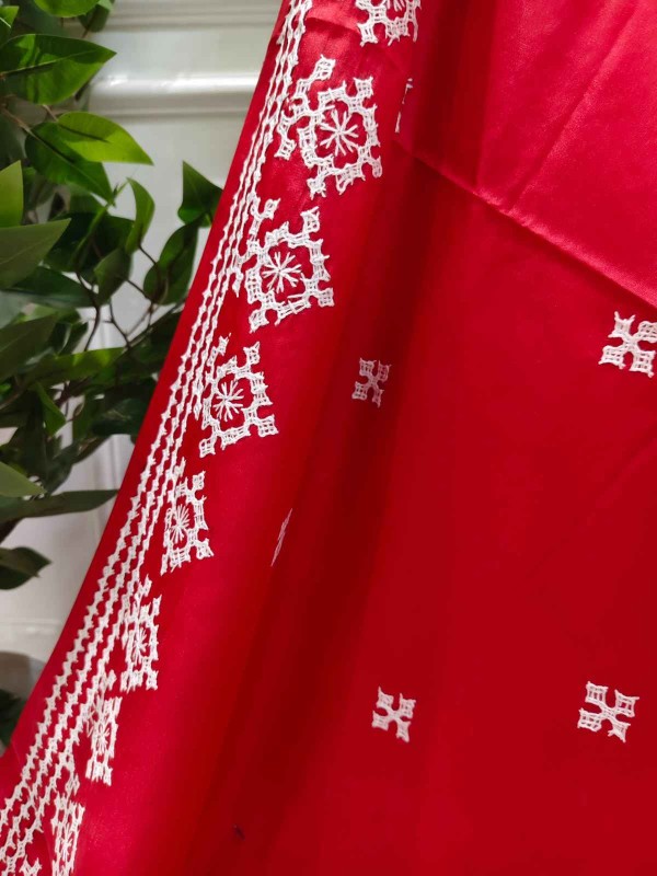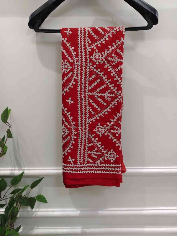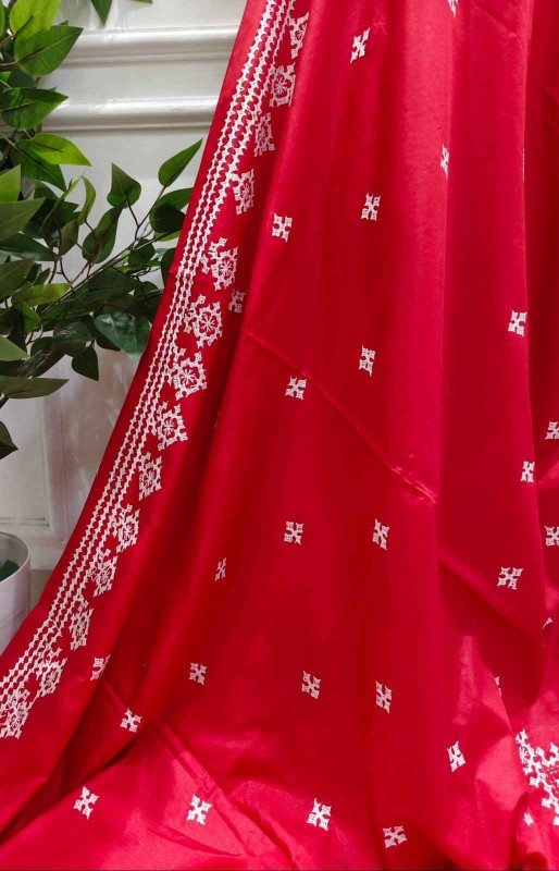 Bold Red With White Grace Bangalore Silk Kantha Saree