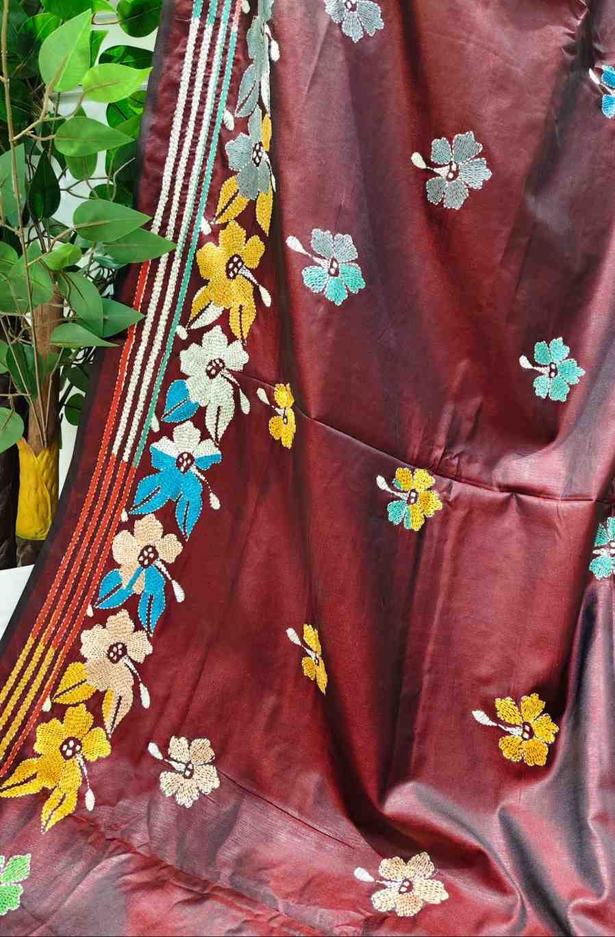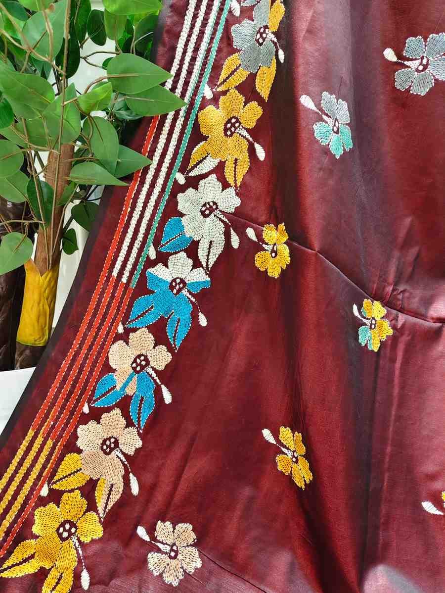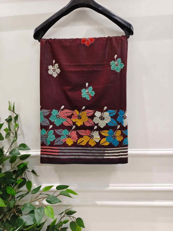 Celebrate timeless craftsmanship with this exquisite Kantha saree, a traditional form of folk embroidery from West Bengal, India. Each saree is a piece of wearable art, hand-stitched using a running stitch technique that has been passed down for generations.