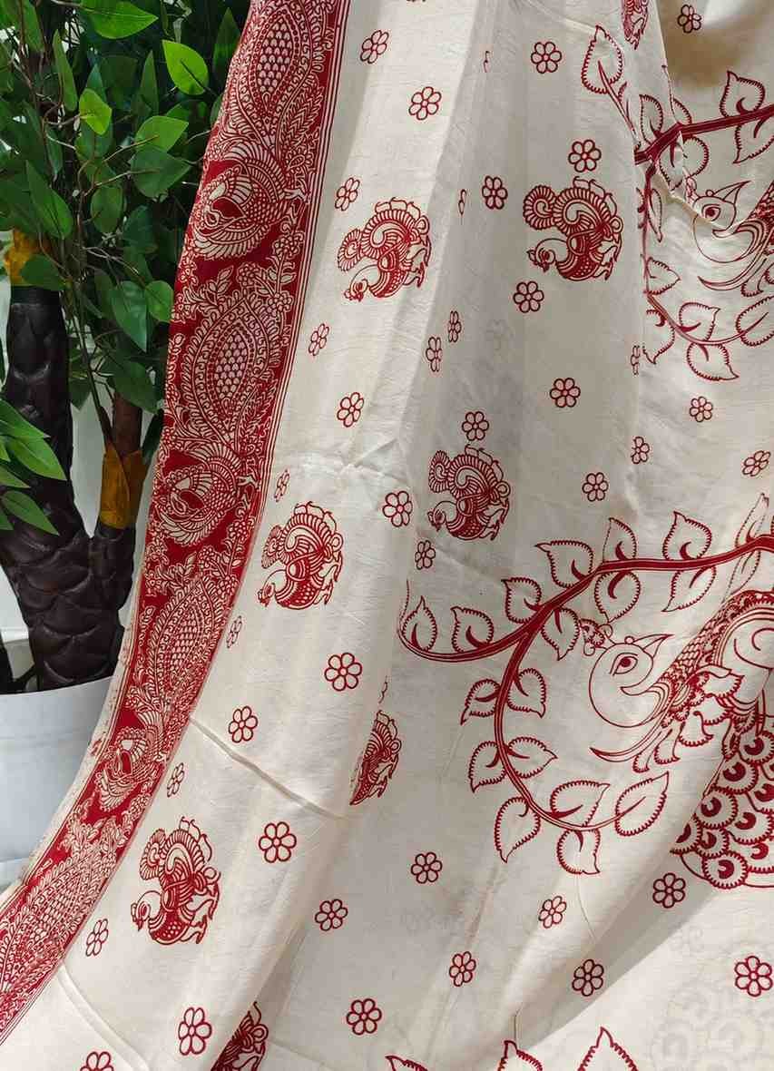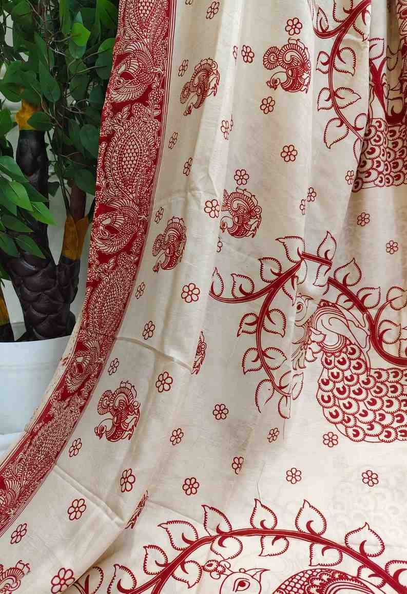 'Chitrangi' Cream base with Floral and Peacock motifs Nellore Silk Kalamkari Saree