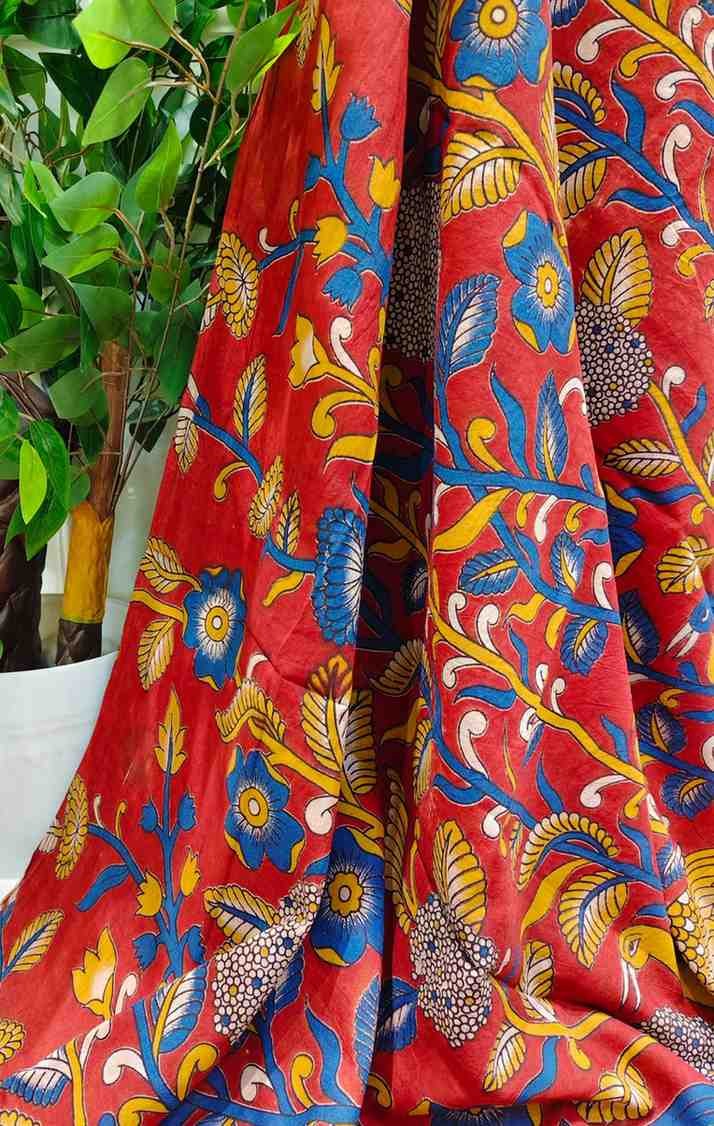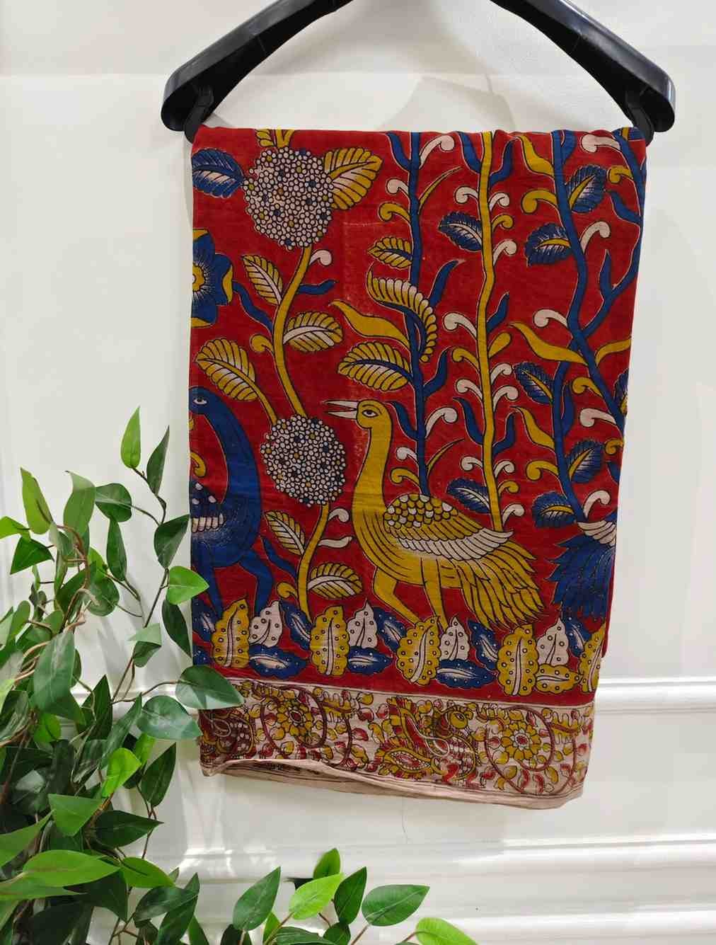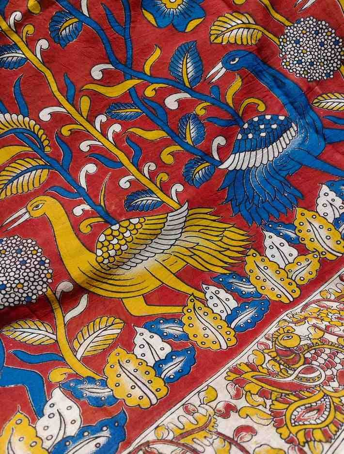 'Chitramayuri' Red canvas cotton Kalamkari Saree