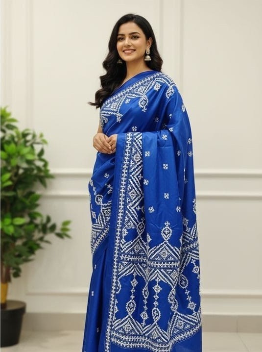Artisanal Craft: 100% hand-embroidered; no two sarees are alike