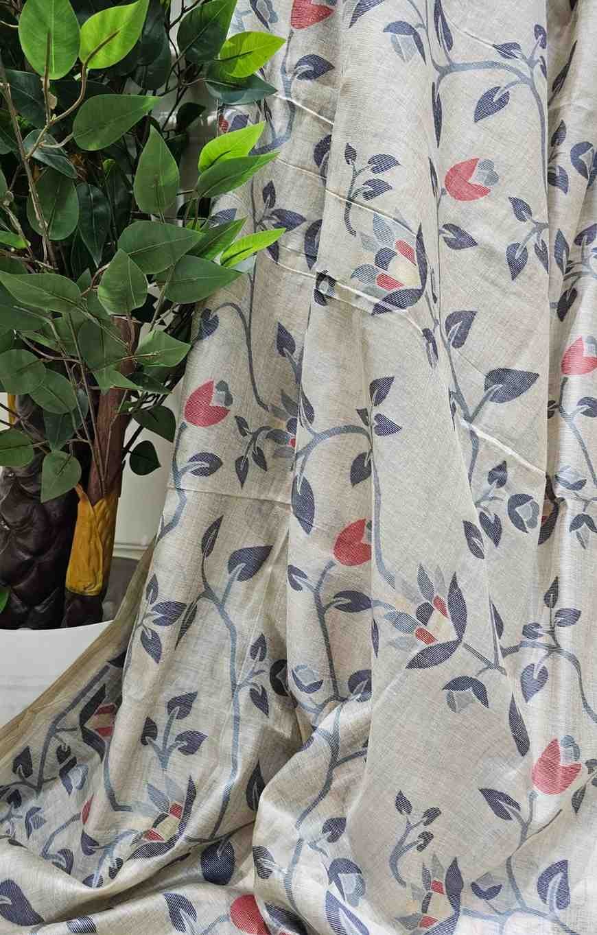 Bring a splash of serene beauty to your wardrobe with our Blue Blossom Floral Art Jamdani Saree. Woven with the finest Jamdani technique, this saree features delicate handwoven floral motifs that create a harmonious blend of art and tradition. The tranquil blue hue, inspired by the soft glow of blossoms, offers a calming and sophisticated tone, making it ideal for weddings, festive occasions, or cultural celebrations. The lightweight, luxurious fabric combined with intricate floral detailing ensures you shine with elegance and grace at any event.