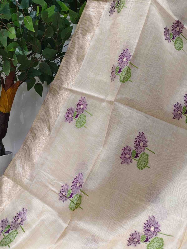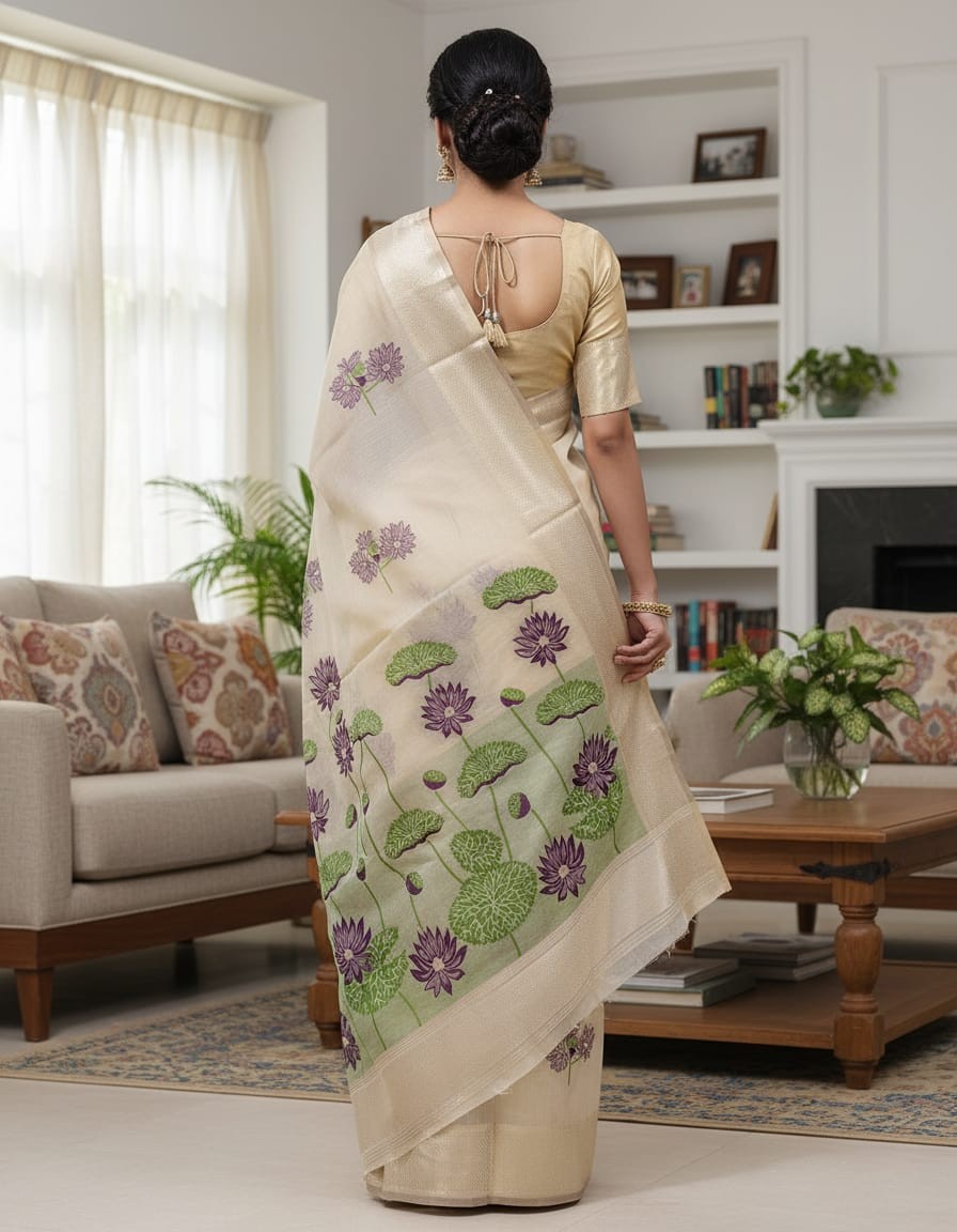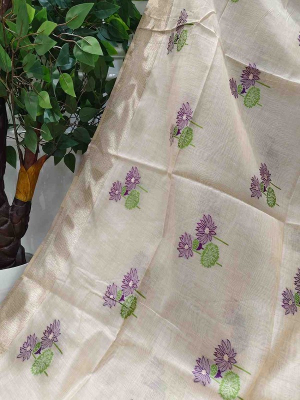 Purple Lily Grove Muga Jamdani Saree