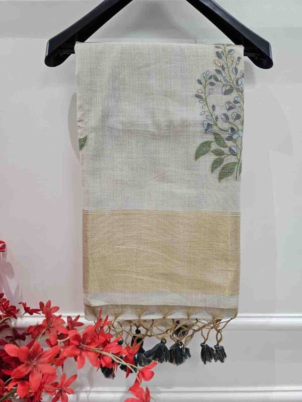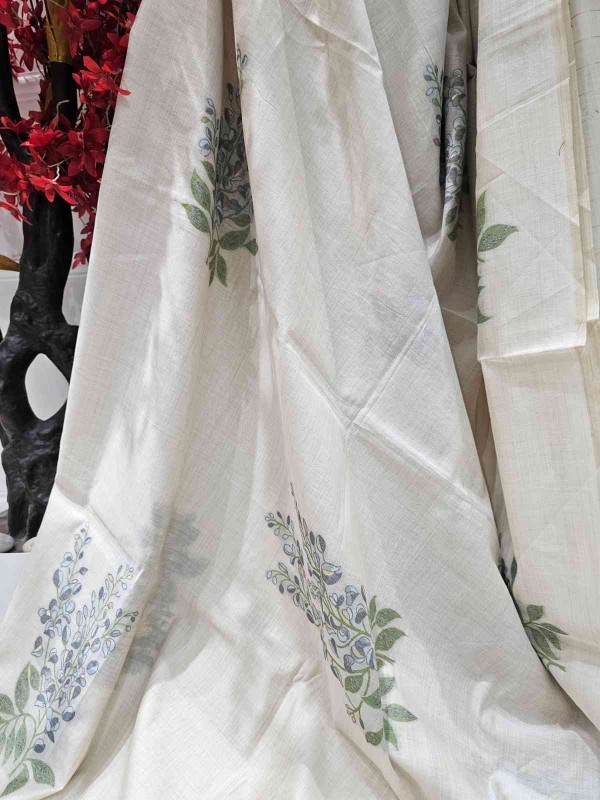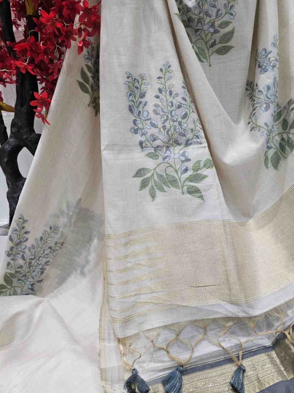 Floral Art Jamdani Saree – Off White with Blue Blossom