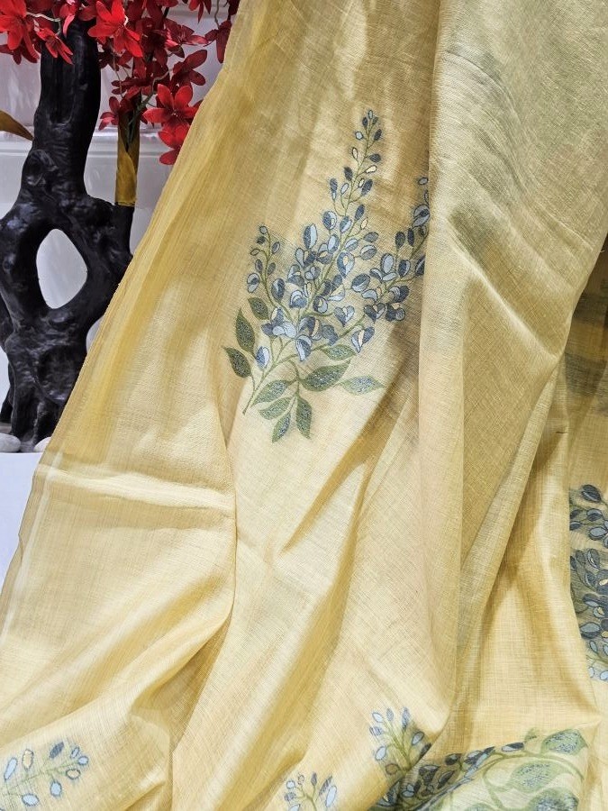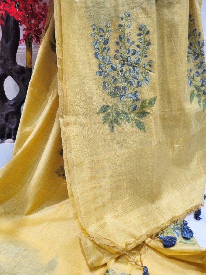 Brighten up your wardrobe with the lively charm of our Yellow Blossom Floral Art Jamdani Saree. This exquisite saree is woven using the finest Jamdani technique, featuring intricate handwoven floral motifs that bring a burst of energy and beauty to the fabric. The vibrant yellow hue, inspired by the freshness of blooming blossoms, offers a cheerful and elegant look, making it perfect for festive celebrations, weddings, or special gatherings. The combination of luxurious fabric and timeless craftsmanship ensures that you stand out with grace and vibrancy.