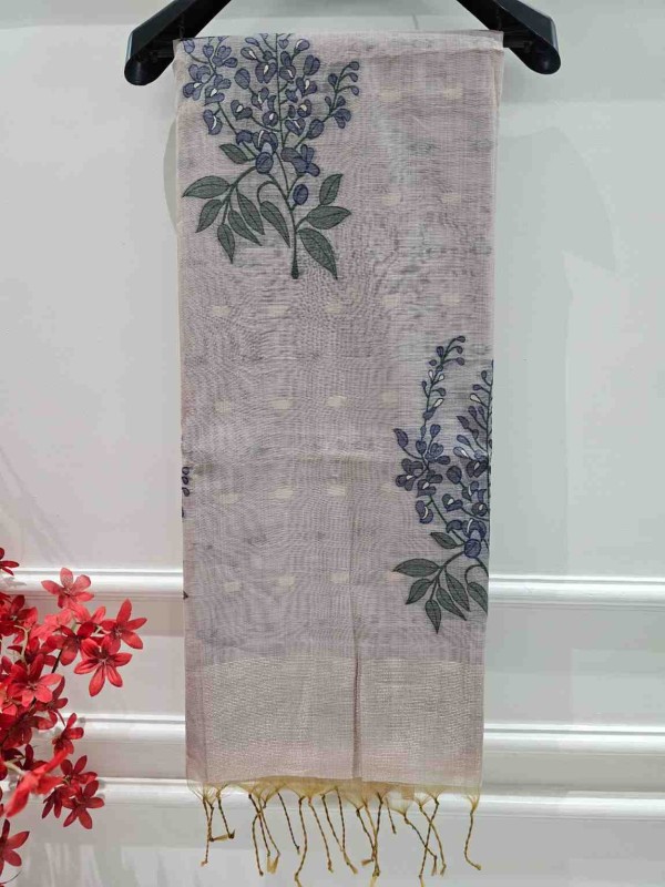Indulge in the beauty of tradition and artistry with our Floral Art Muga Jamdani Saree, featuring an elegant English Color Base adorned with exquisite Blue Blossom Motifs. Woven from the finest Muga silk, this saree boasts a natural sheen and luxurious texture, making it a perfect blend of heritage craftsmanship and modern elegance. The blue blossoms delicately contrast against the soft English color base, creating a serene and sophisticated design. This saree is ideal for weddings, cultural celebrations, or festive occasions, adding a refined touch of beauty to any special event.
