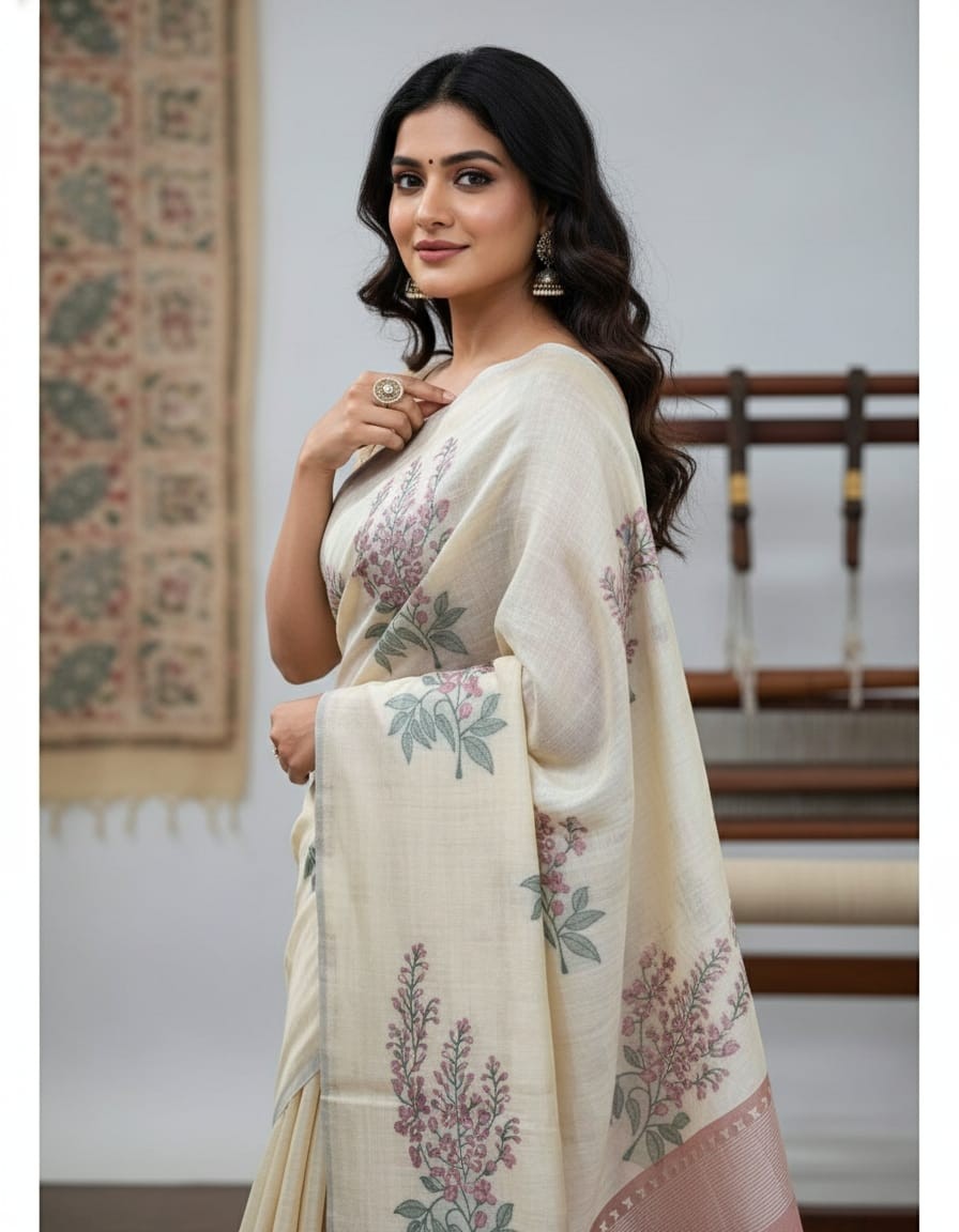 Discover the allure of timeless craftsmanship with our Floral Art Muga Jamdani Saree in Off White adorned with striking Red Blossom Motifs. Woven from the finest Muga silk, this saree exudes natural sheen and luxurious texture, offering a perfect balance of traditional artistry and contemporary elegance. The red blossoms beautifully contrast against the serene off-white base, creating a sophisticated and eye-catching design. Ideal for weddings, cultural celebrations, or festive occasions, this saree celebrates the rich tradition of Muga Jamdani weaving while adding a pop of color and grace to your wardrobe.