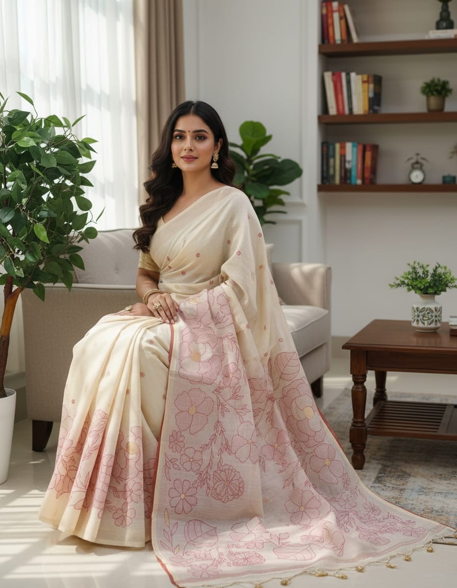 Embrace the beauty of nature with our Brown Floral Mist Muga Jamdani Saree. Crafted with the finest Jamdani weaving technique, this saree features intricate handwoven floral motifs that add a touch of artistry and grace. The vibrant brown hue, inspired by the freshness of blooming foliage, offers a refreshing and lively look, making it perfect for festive celebrations, weddings, or cultural events. The delicate floral design, combined with the lightweight yet luxurious fabric, ensures that you make a statement of elegance and sophistication.