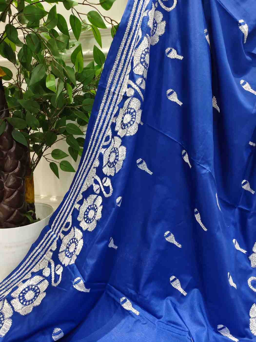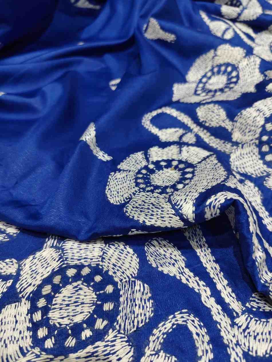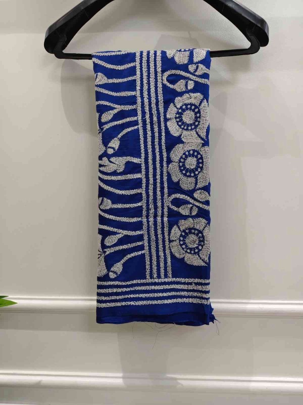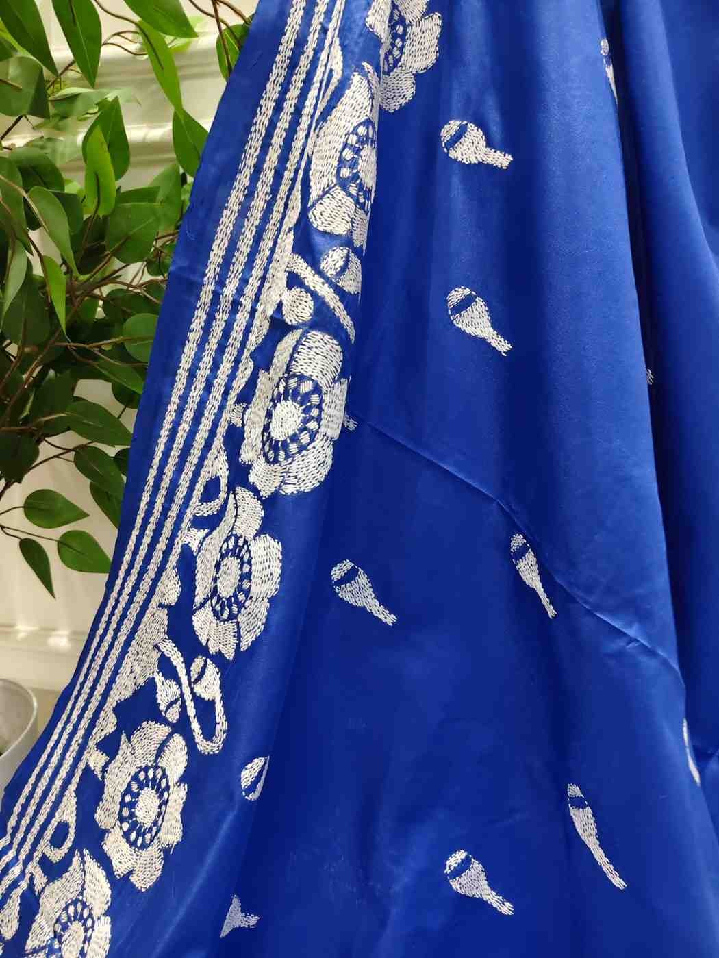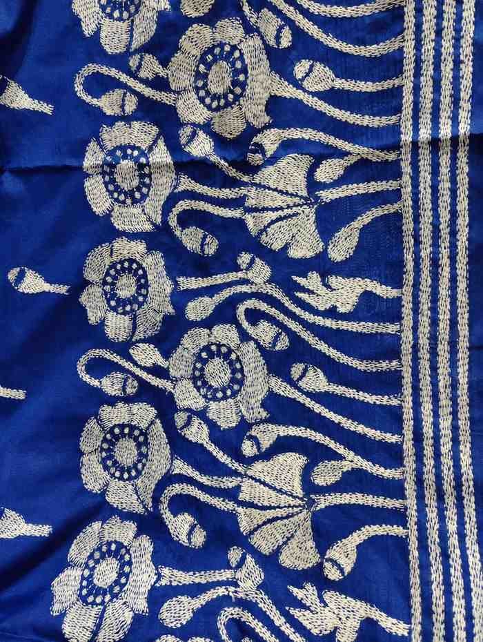 Celebrate timeless craftsmanship with this exquisite Kantha saree, a traditional form of folk embroidery from West Bengal, India. Each saree is a piece of wearable art, hand-stitched using a running stitch technique that has been passed down for generations.