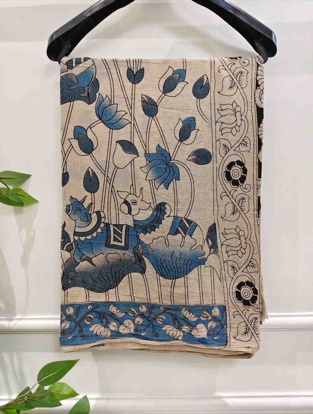 'Gokamalini' Off White canvas cotton Kalamkari Saree