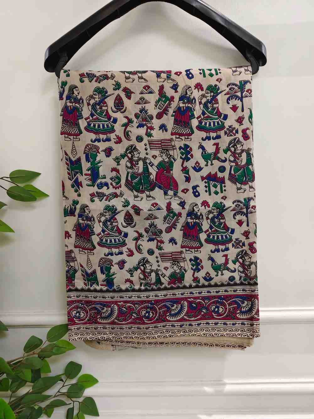 'Gramleela' White base with colorful motifs Nellore Silk Kalamkari Saree