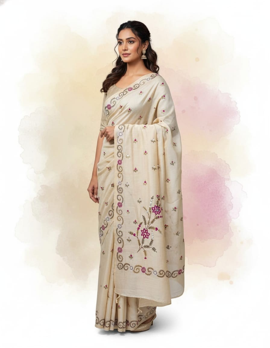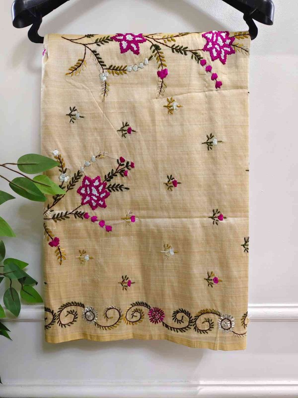 Immerse yourself in the beauty of traditional artistry with the Hand Stitched Nakshi Kantha Saree -Deep pink. The vibrant deep pink fabric forms the perfect backdrop for the intricate Nakshi Kantha embroidery, with each hand-stitched motif crafted with care and precision. The Nakshi Kantha technique is known for its exquisite detailing and rich texture, creating a stunning visual effect that elevates the saree’s beauty. This saree is perfect for weddings, cultural celebrations, or formal events, offering a timeless, classic appeal with a modern twist. The Deep pink hue combined with the intricate embroidery makes this saree a perfect blend of elegance and heritage.