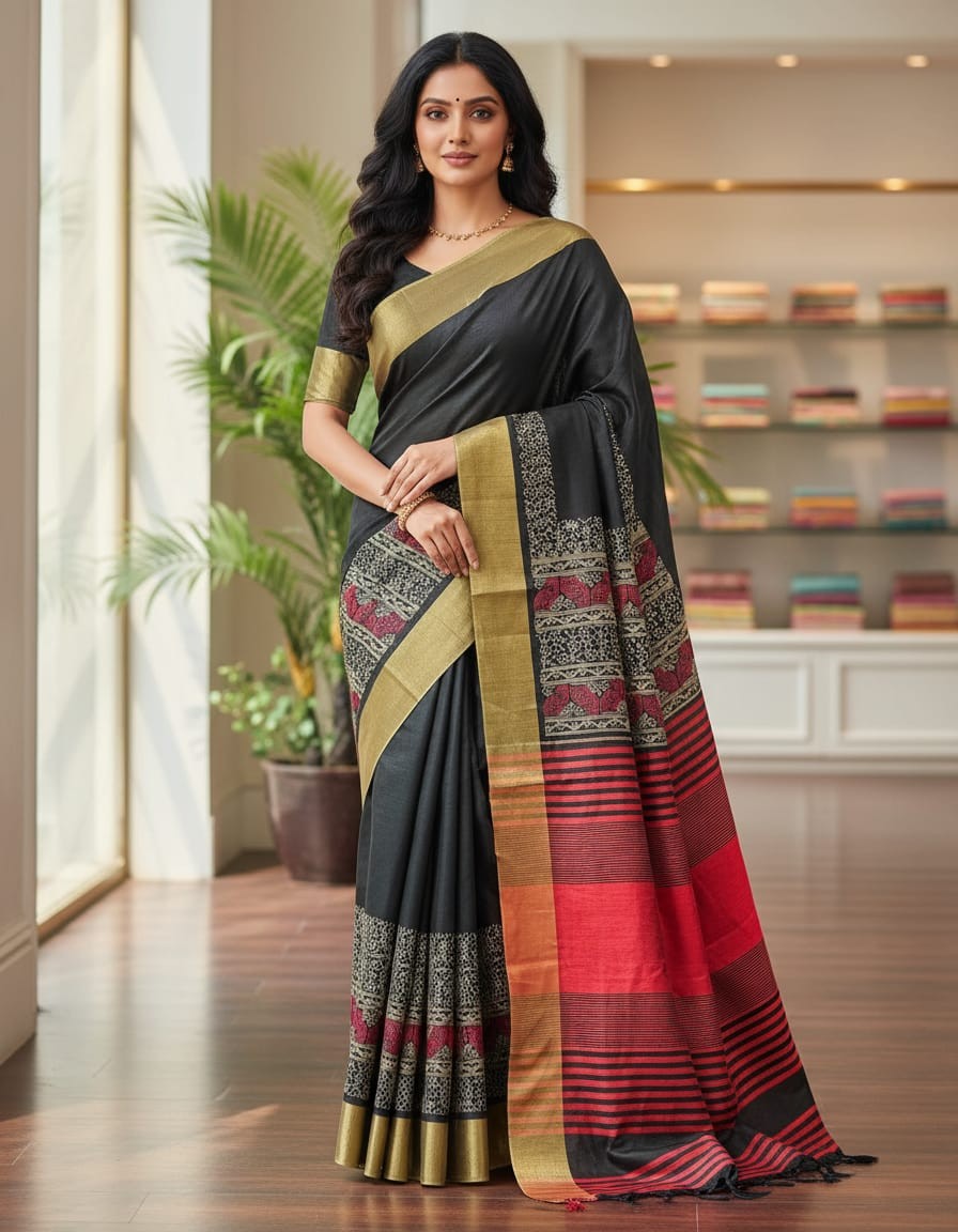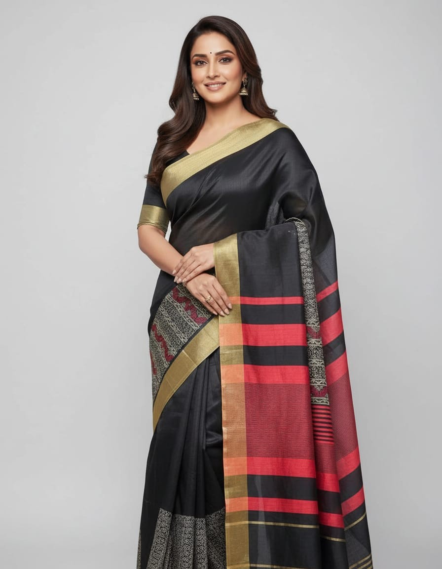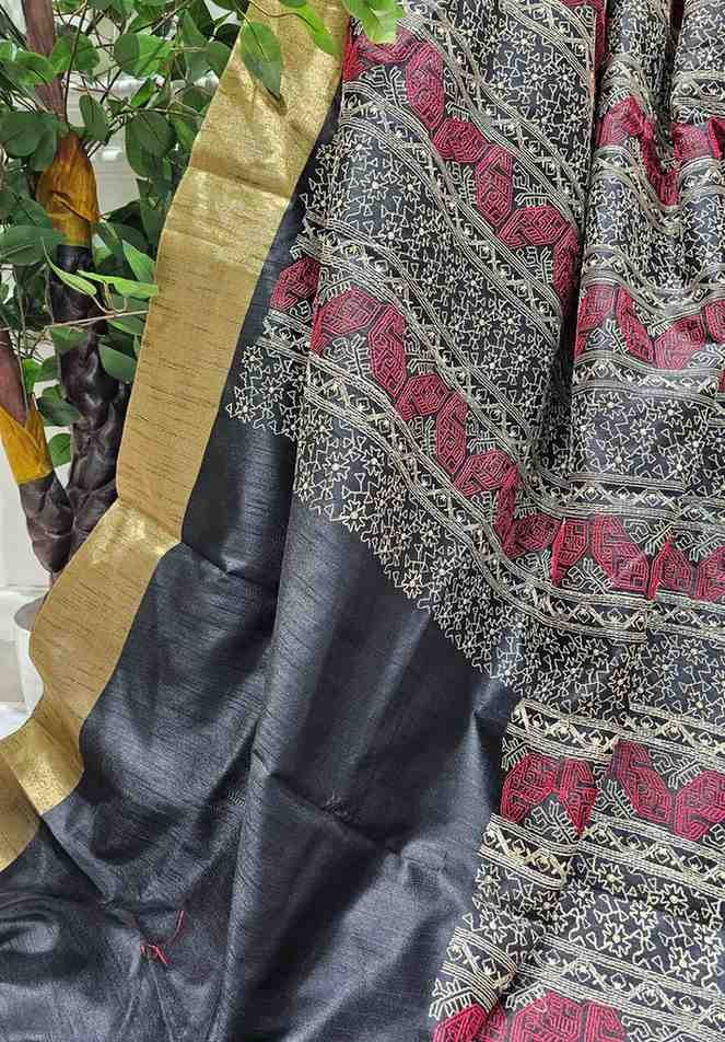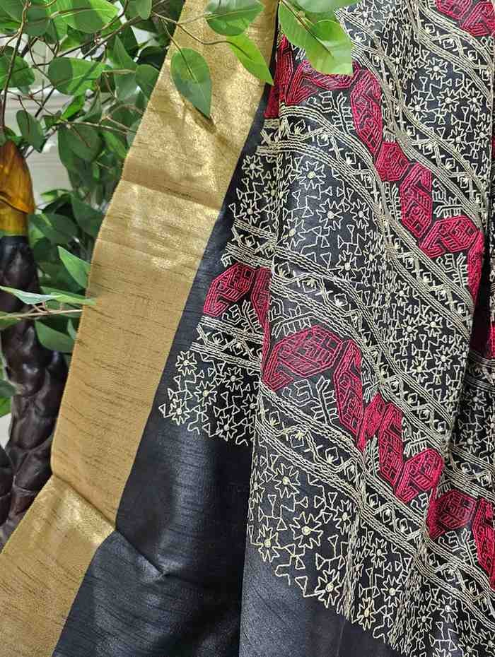 Hand Stitched Assam Silk – Black