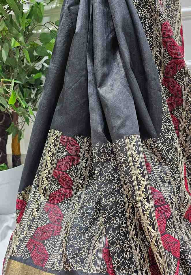 Indulge in timeless sophistication with our Hand Stitched Assam Silk Saree in Black, a true representation of Assamese craftsmanship. Crafted from the finest Assam silk, this saree offers a rich, luxurious texture complemented by intricate hand-stitched details that add depth and artistry to the fabric. The deep black hue creates a perfect backdrop for the meticulous handwork, making it ideal for elegant evening events, weddings, or festive gatherings. With its natural sheen and refined design, this saree is sure to make a striking statement of grace and tradition.