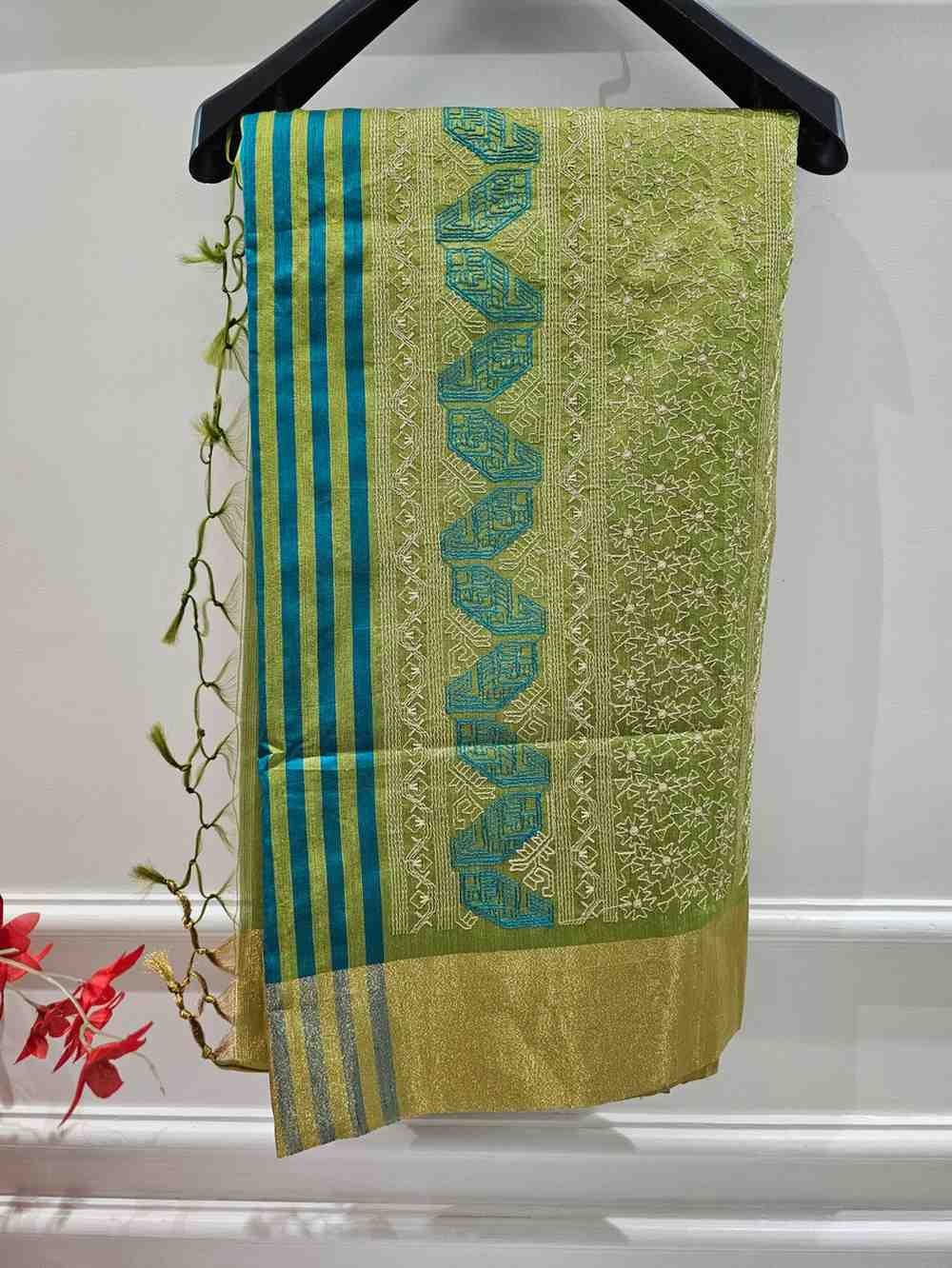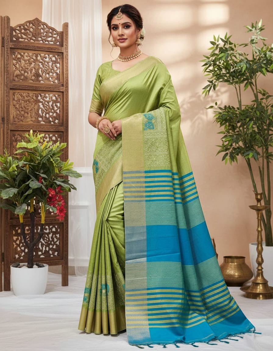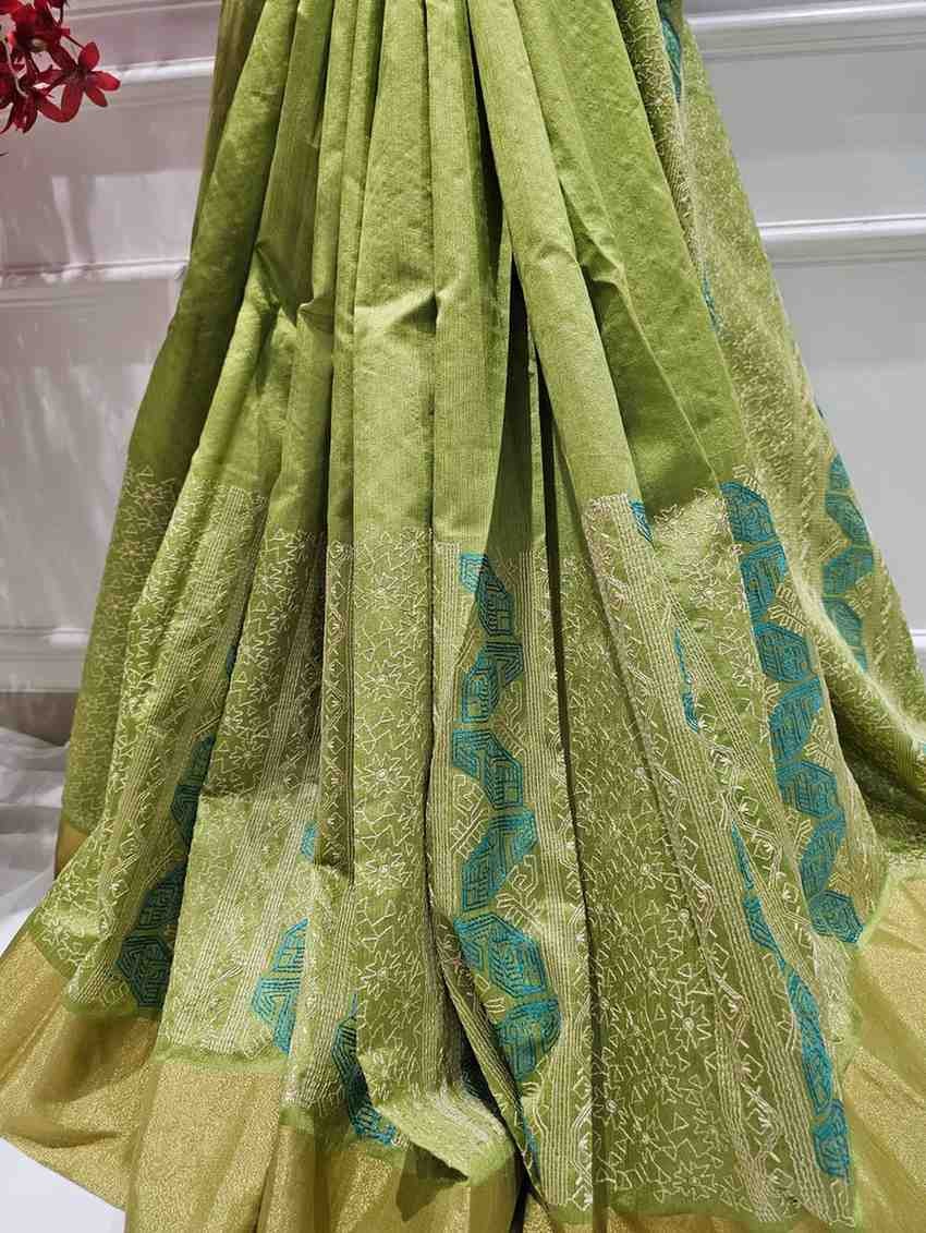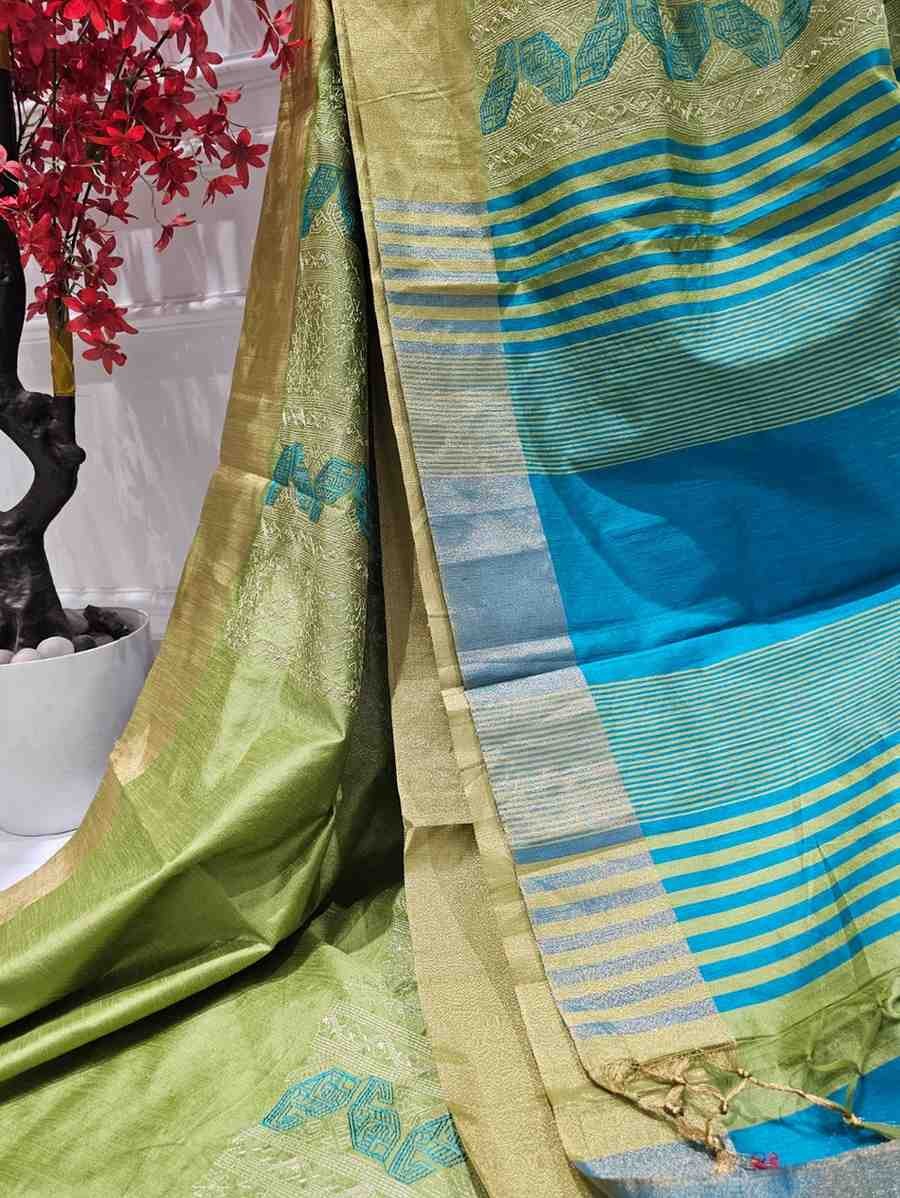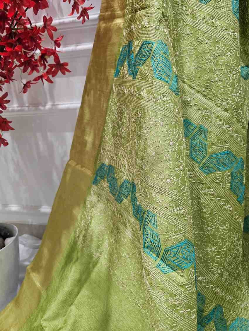 Add a pop of vibrant color to your wardrobe with our Hand Stitched Assam Silk Saree in a refreshing Lime Green. Expertly woven from the finest Assam silk, this saree is a perfect blend of traditional craftsmanship and modern style. The vibrant lime green base is eye-catching and energetic, making it an ideal choice for weddings, festivals, or celebratory occasions. The meticulous hand-stitching adds an extra layer of artistry and craftsmanship, elevating the beauty and elegance of the saree.