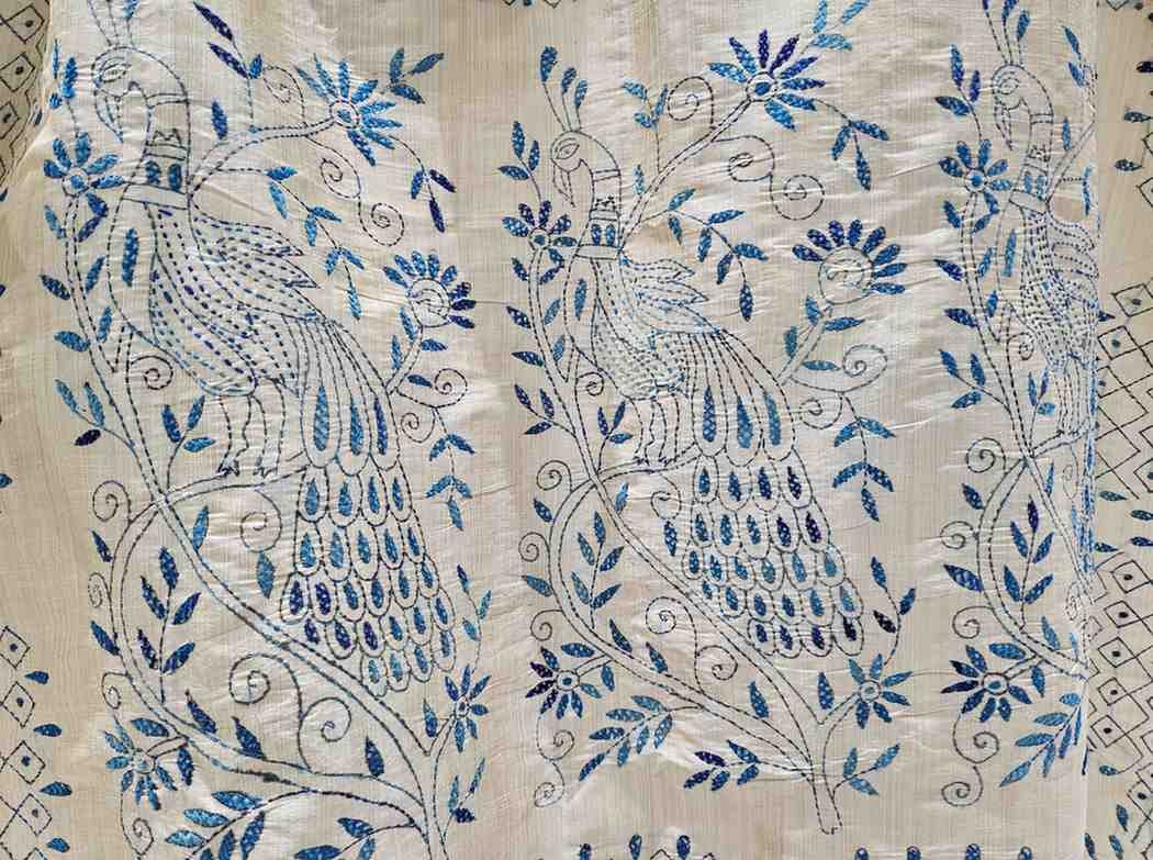 Design: Fragmented Kadhwa Kantha with Peacock Motifs