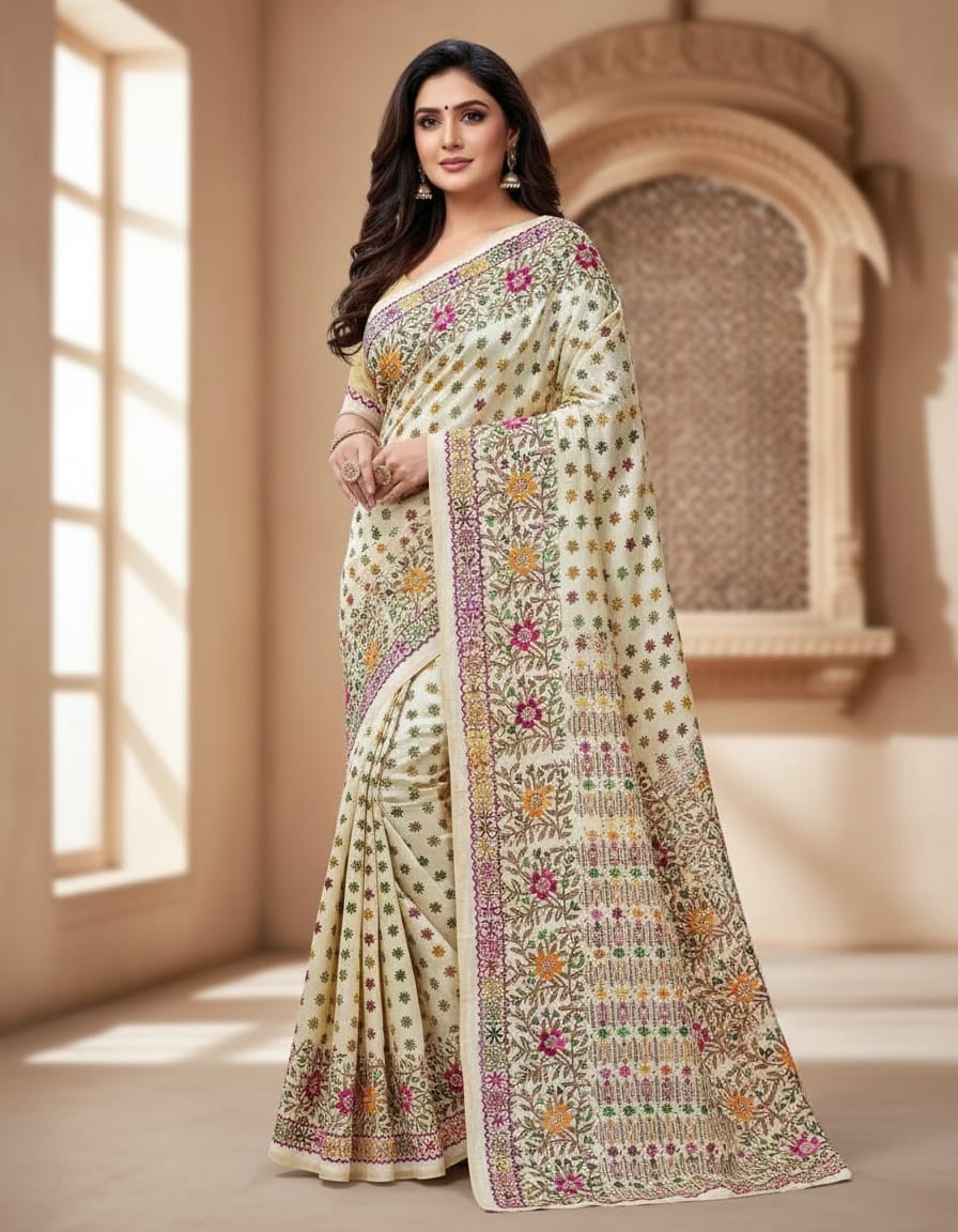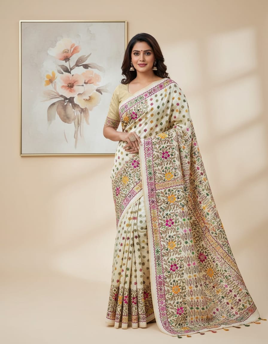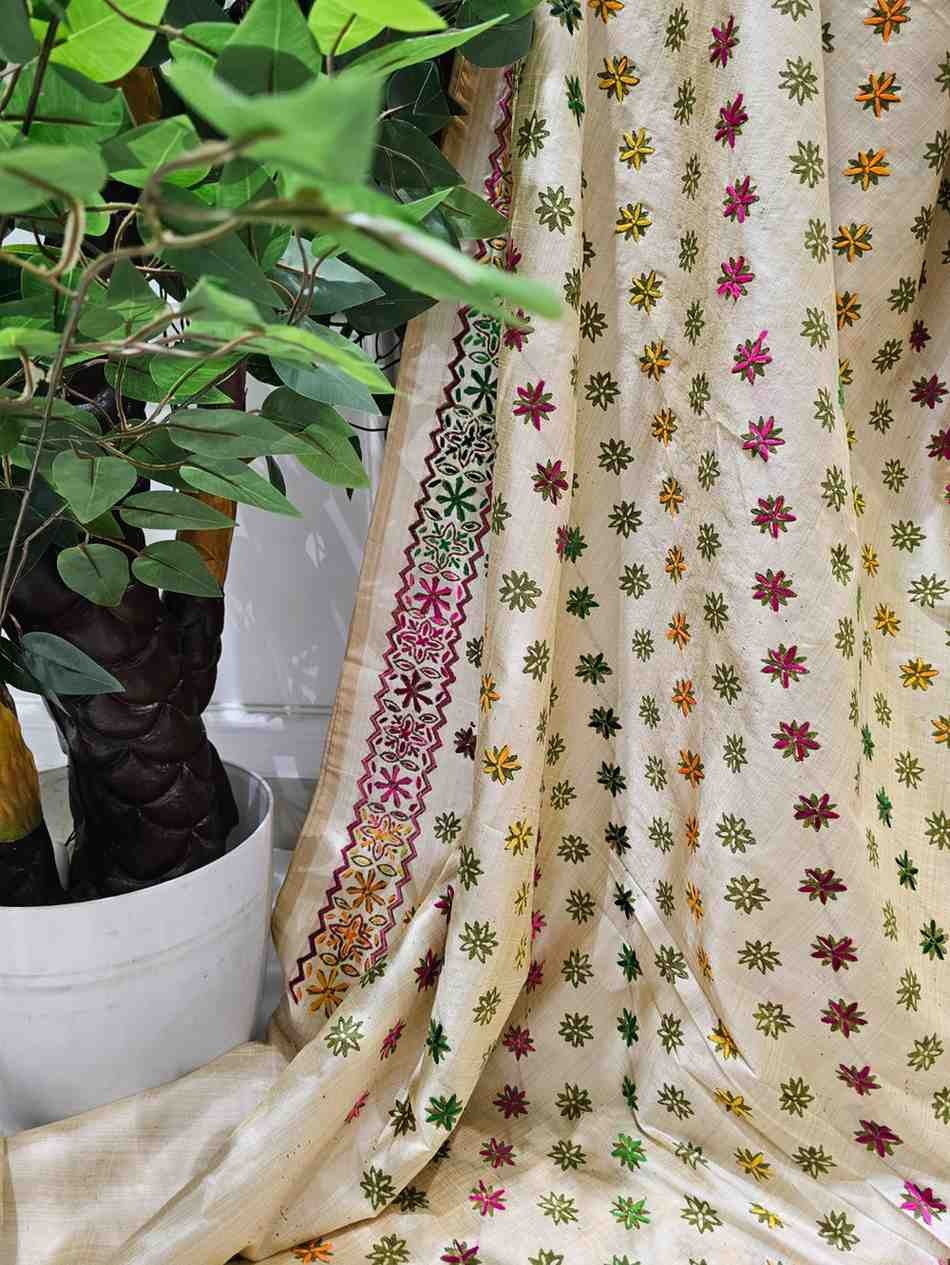 Design: Hand Stitched Kadhwa Kantha Motifs in Mixed Colors