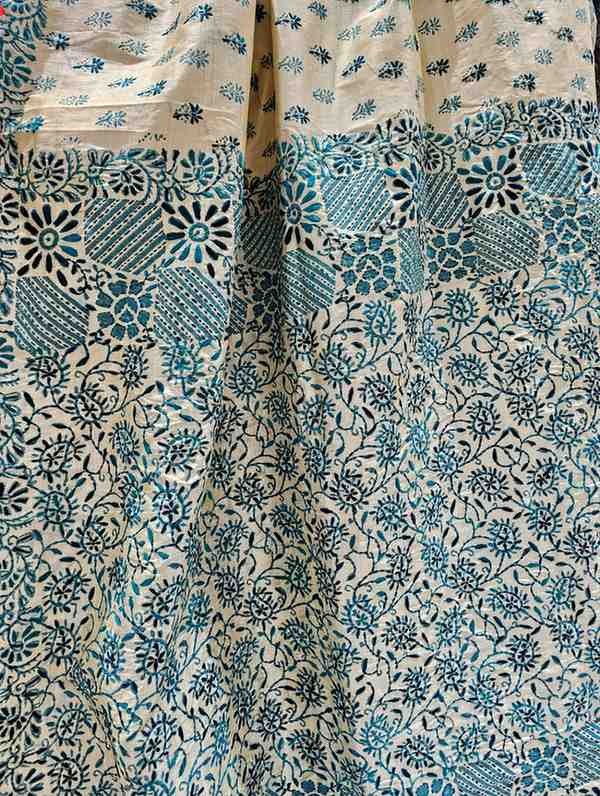 Wash Care: Hand Wash with pH-neutral detergent and cold water (2) Avoid using harsh detergents and chemicals (3) Prints using natural dyes like indigo, madder etc. may bleed color in initial wash, so it's best to wash them separately (4) Gentle washing recommended.