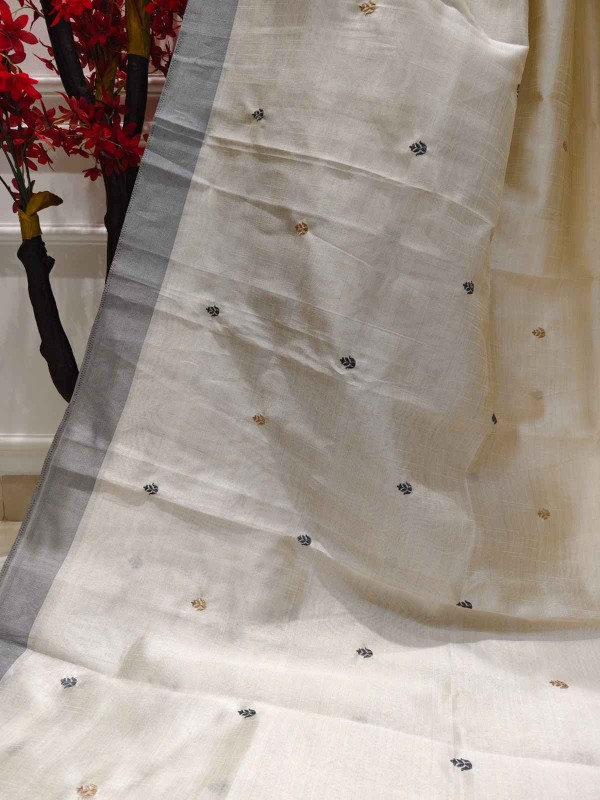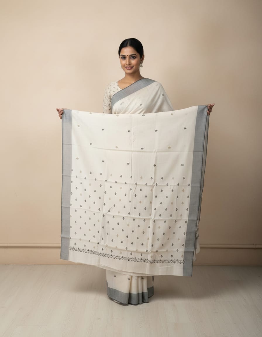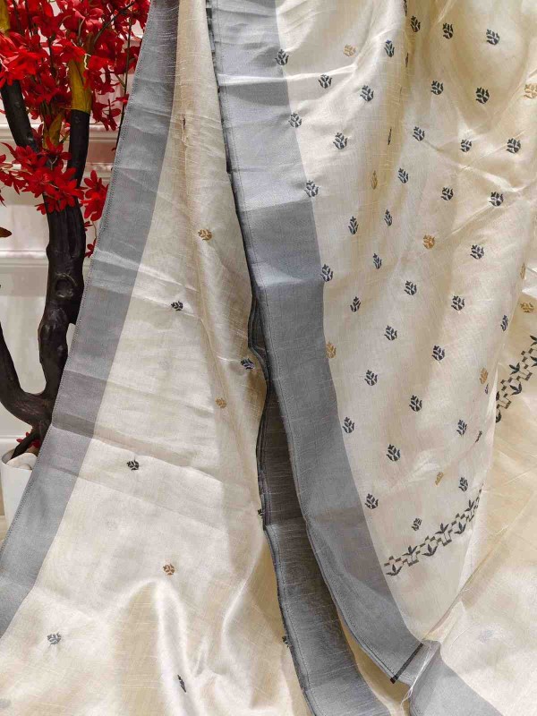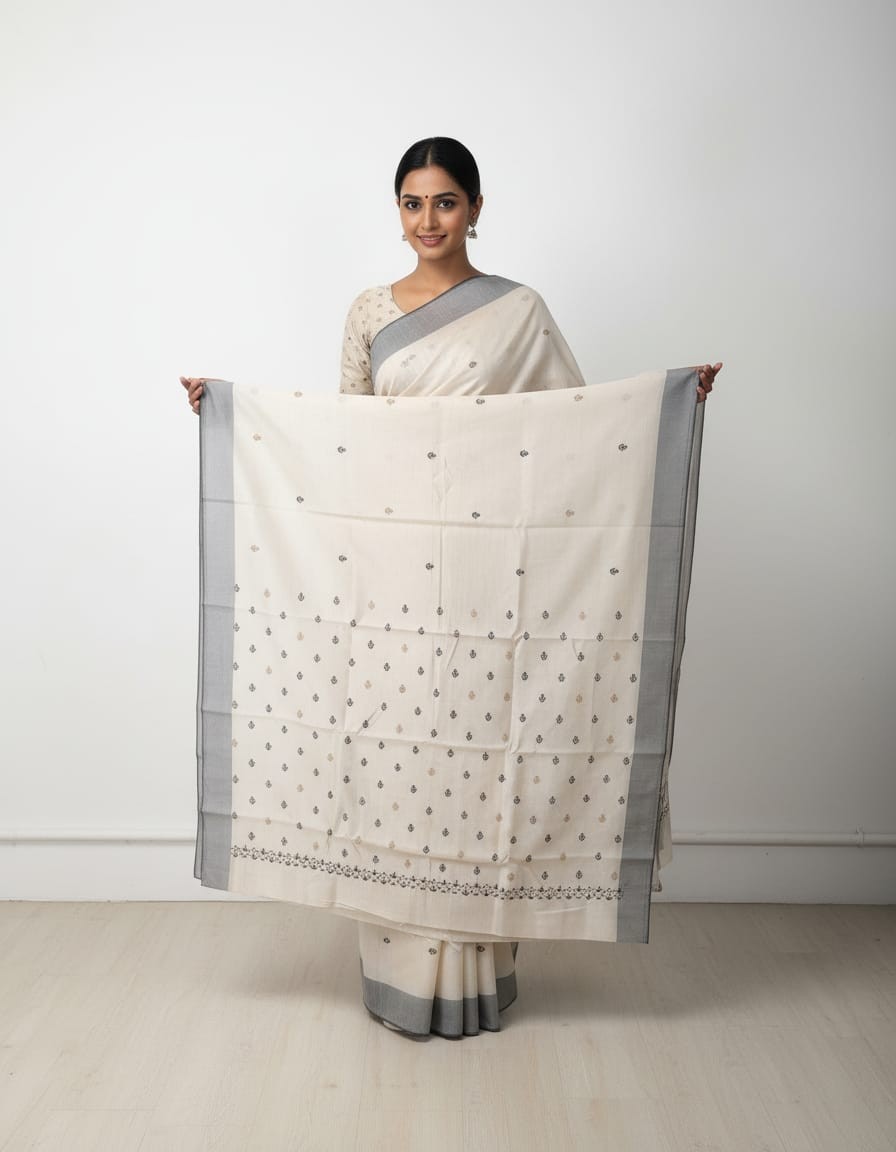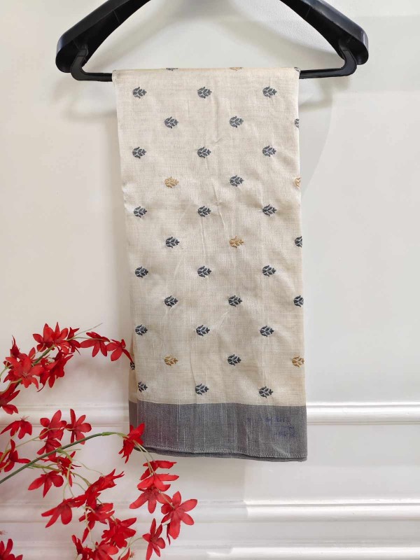 Timeless beauty meets handcrafted elegance in our Hand Stitched Matka Silk Saree adorned with intricate Butta Designs and a sophisticated Grey Border. Made from richly textured Matka silk, this saree reflects understated luxury and heritage charm. The delicate hand-stitched Butta patterns bring a soft, artistic touch, while the grey border adds depth and balance to the design. Ideal for festive gatherings, artistic events, or elegant daywear, this saree is a tribute to nature’s grace and traditional craftsmanship.