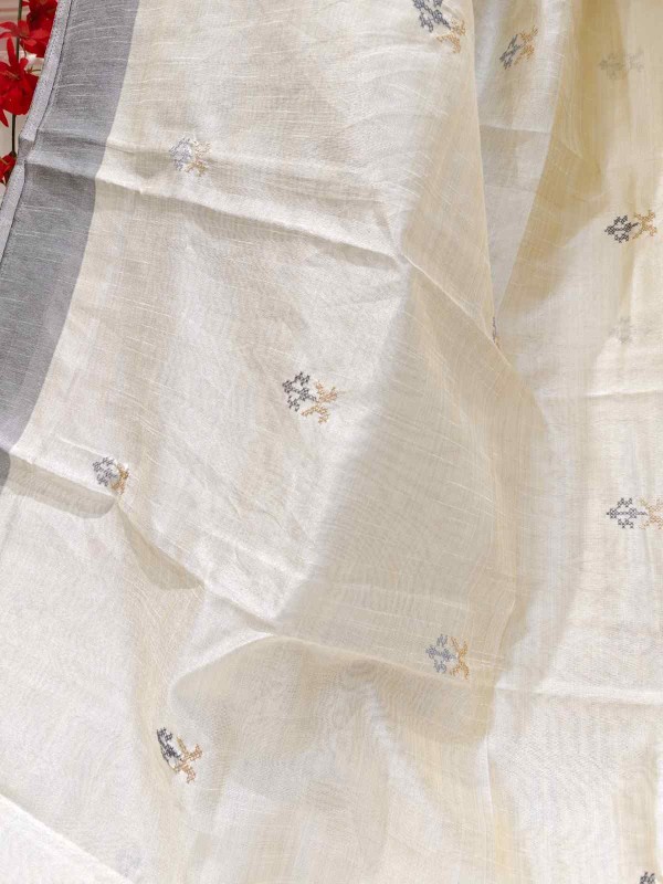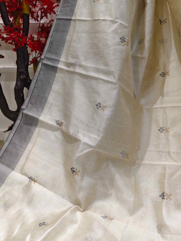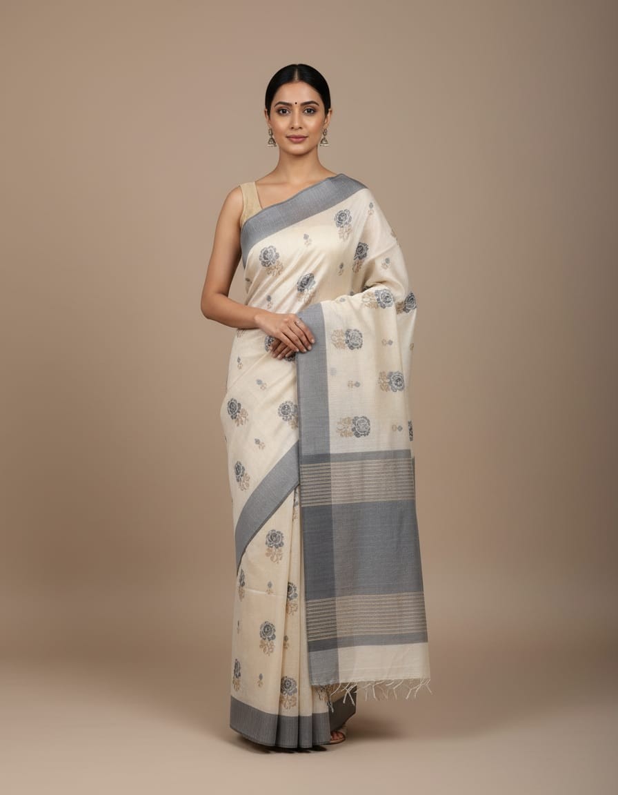 Timeless beauty meets handcrafted elegance in our Hand Stitched Matka Silk Saree adorned with intricate Rose Designs and a sophisticated Grey Border. Made from richly textured Matka silk, this saree reflects understated luxury and heritage charm. The delicate hand-stitched Rose patterns bring a soft, artistic touch, while the grey border adds depth and balance to the design. Ideal for festive gatherings, artistic events, or elegant daywear, this saree is a tribute to nature’s grace and traditional craftsmanship.