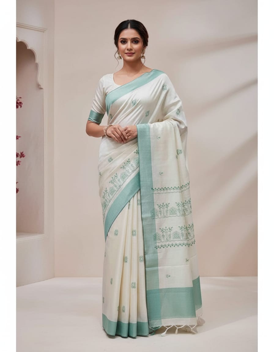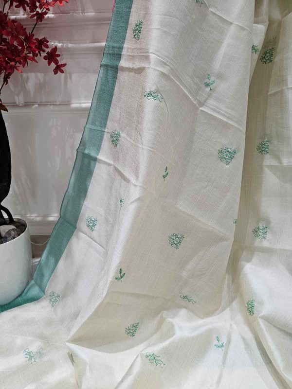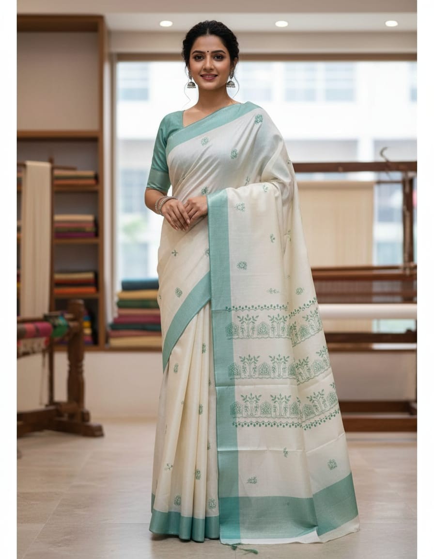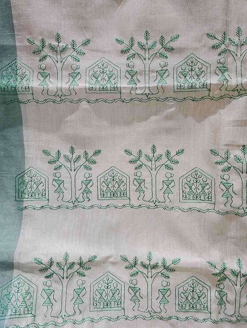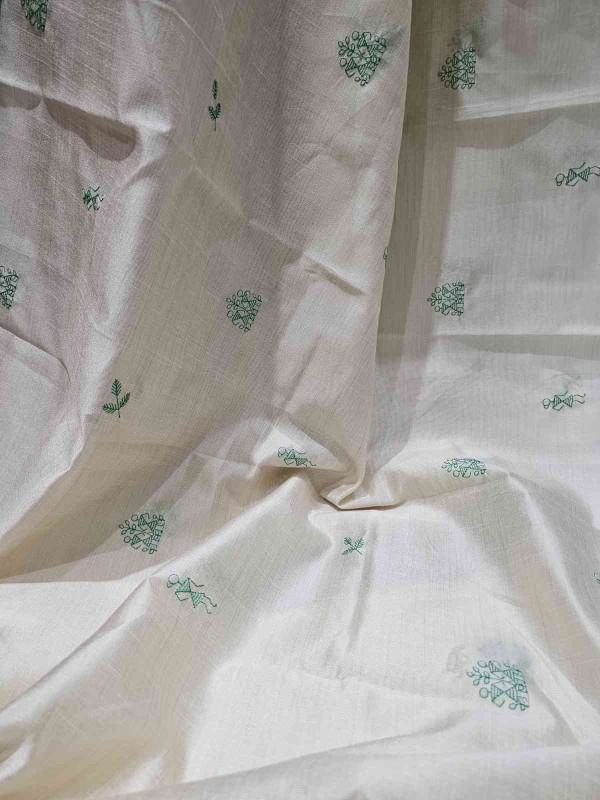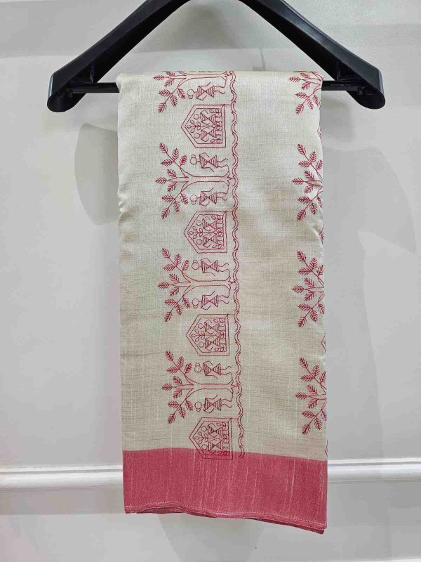 Color: Natural Matka Silk Base with Vibrant Rural Life Design