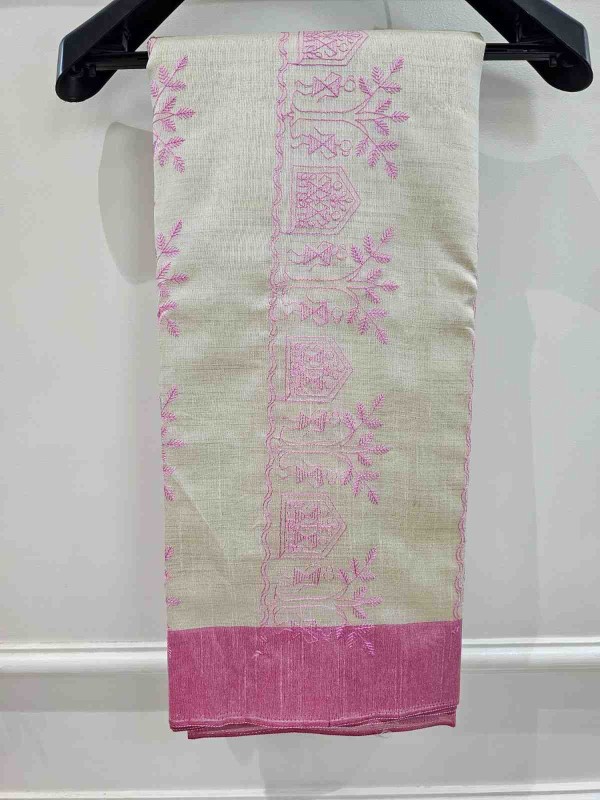 Celebrate the beauty of rural traditions with our Hand Stitched Matka Silk Saree, featuring an enchanting Rural Life Design in shades of Pink, Green, and Red. Crafted from the finest Matka silk, this saree showcases the raw elegance of the fabric, enhanced with hand-stitched motifs that depict the simplicity and charm of rural life. The vibrant pink, green, and red tones bring the design to life, creating a stunning contrast that reflects the warmth and vibrancy of rural culture. Perfect for festive celebrations, cultural events, or traditional weddings, this saree beautifully captures the essence of heritage, while offering a contemporary twist.