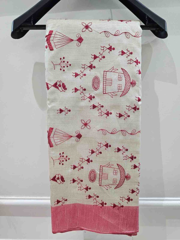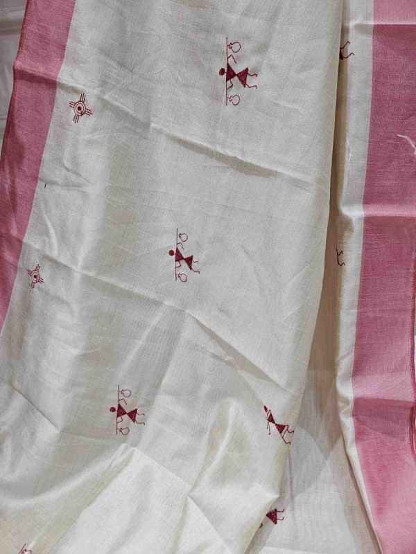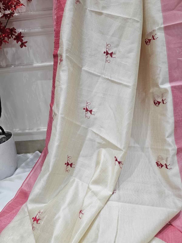 Color: Natural Matka Silk Base with Colorful Warali Design