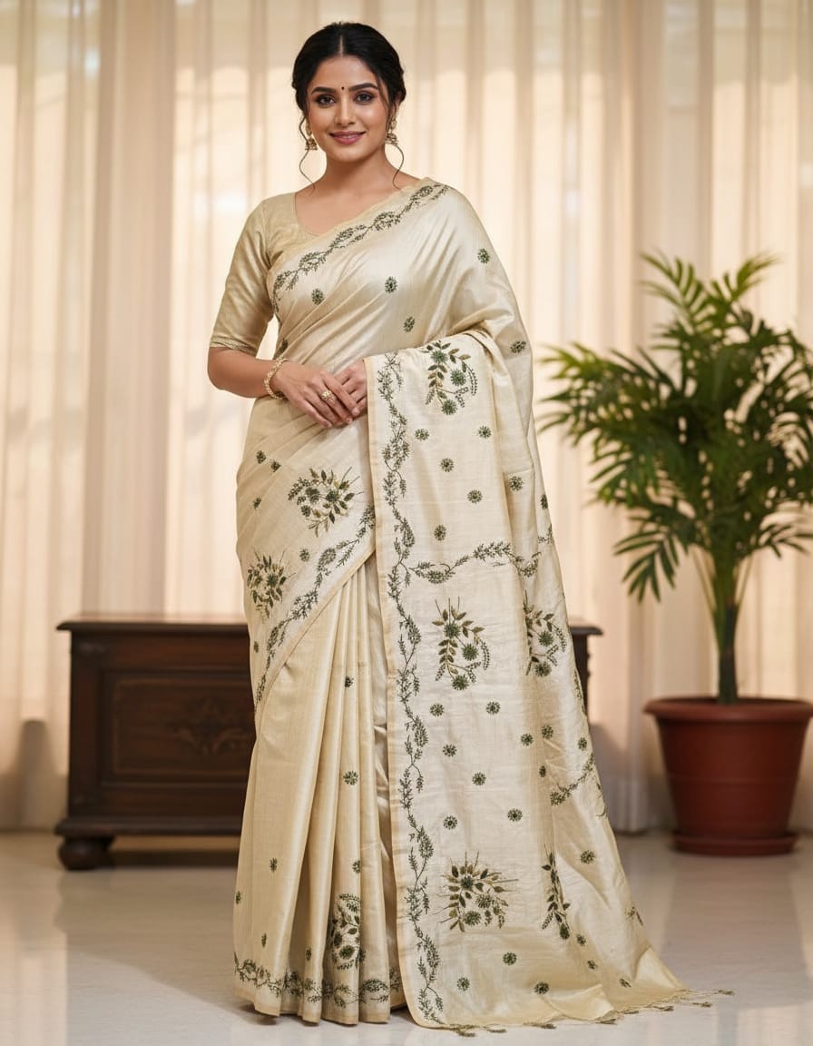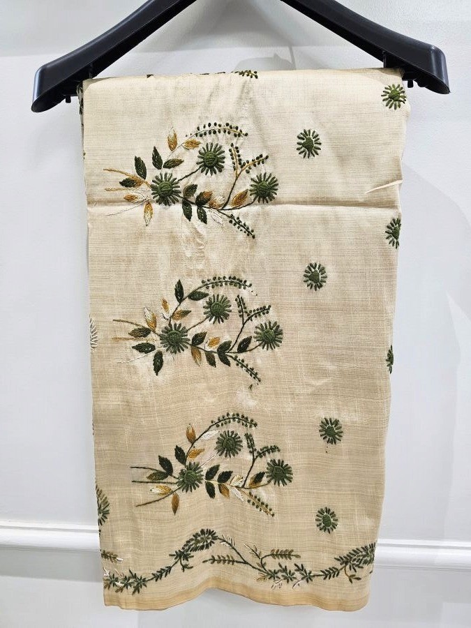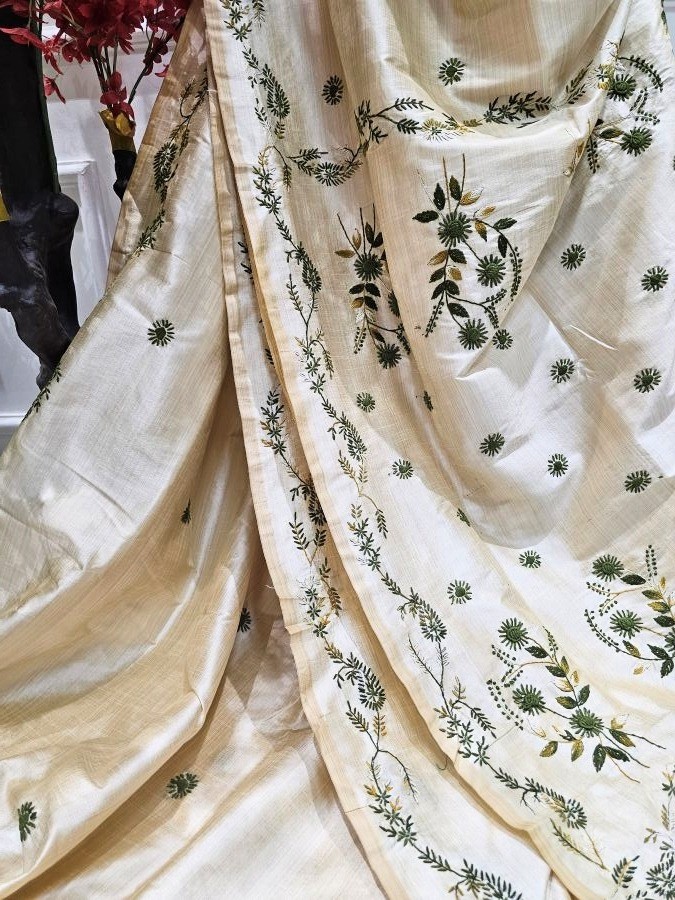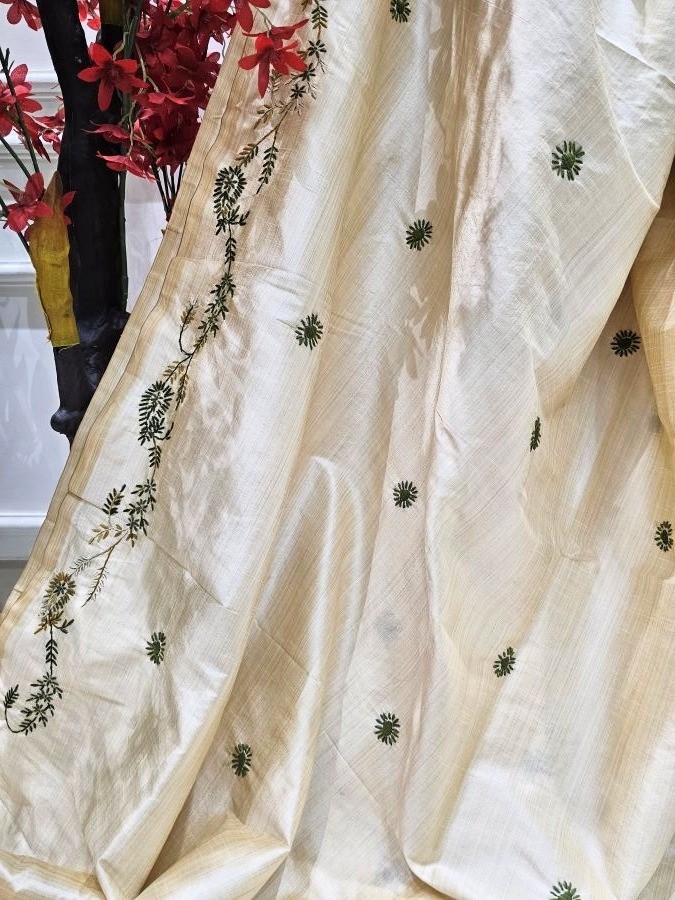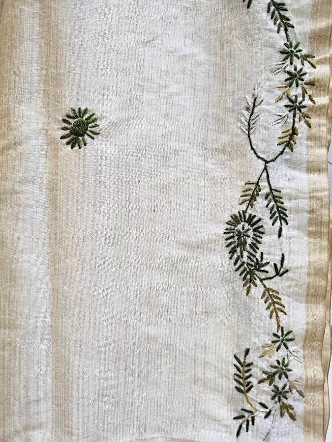 Hand Stitched Nakshi Kantha Saree – Leaf Green