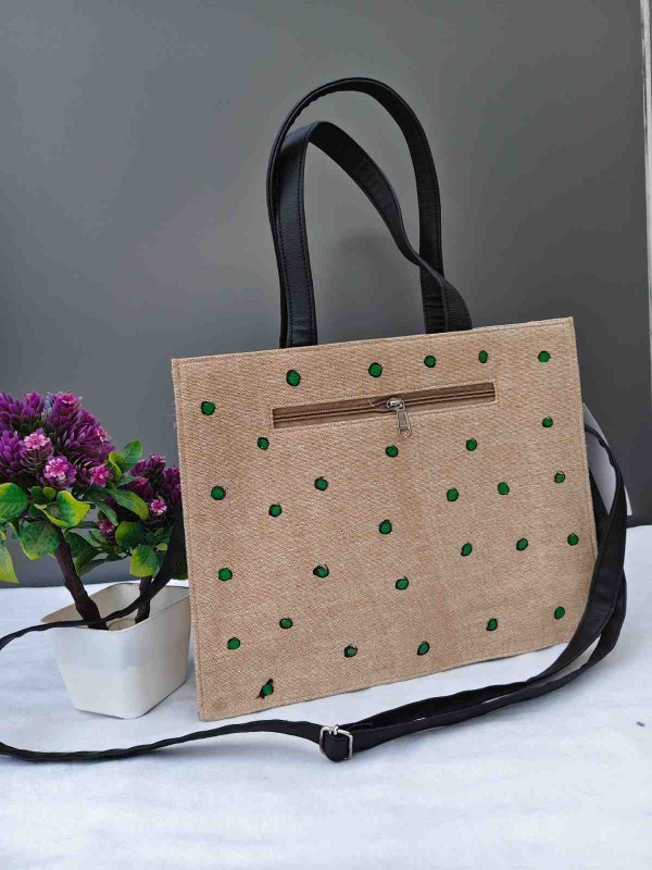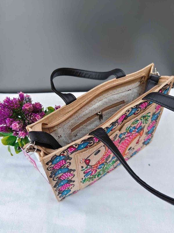 Handpainted Madhubani Box Tote Jute Bag - Twin Fish Design