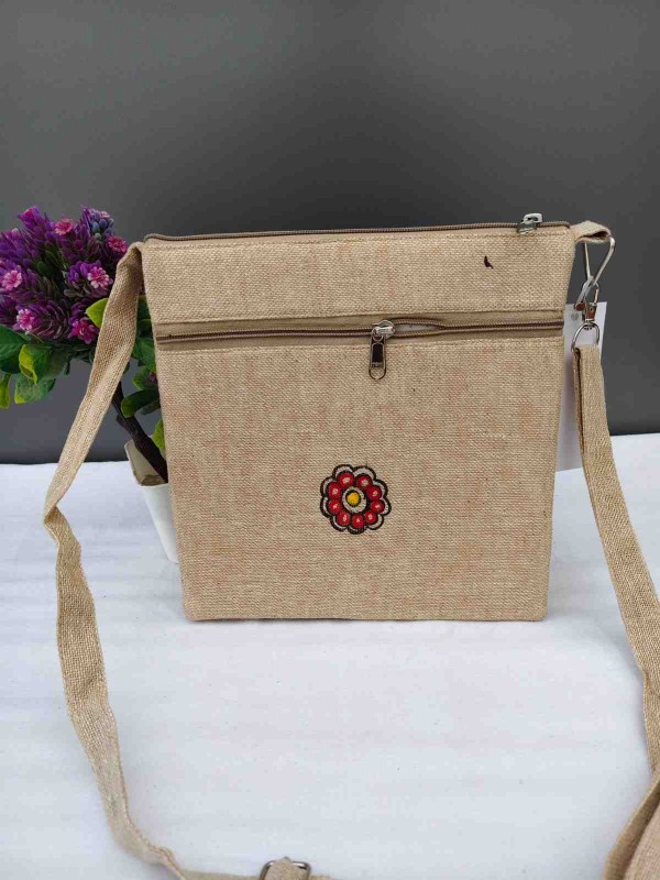 Handpainted Madhubani Jute Small Sling Bag - Mandala Design