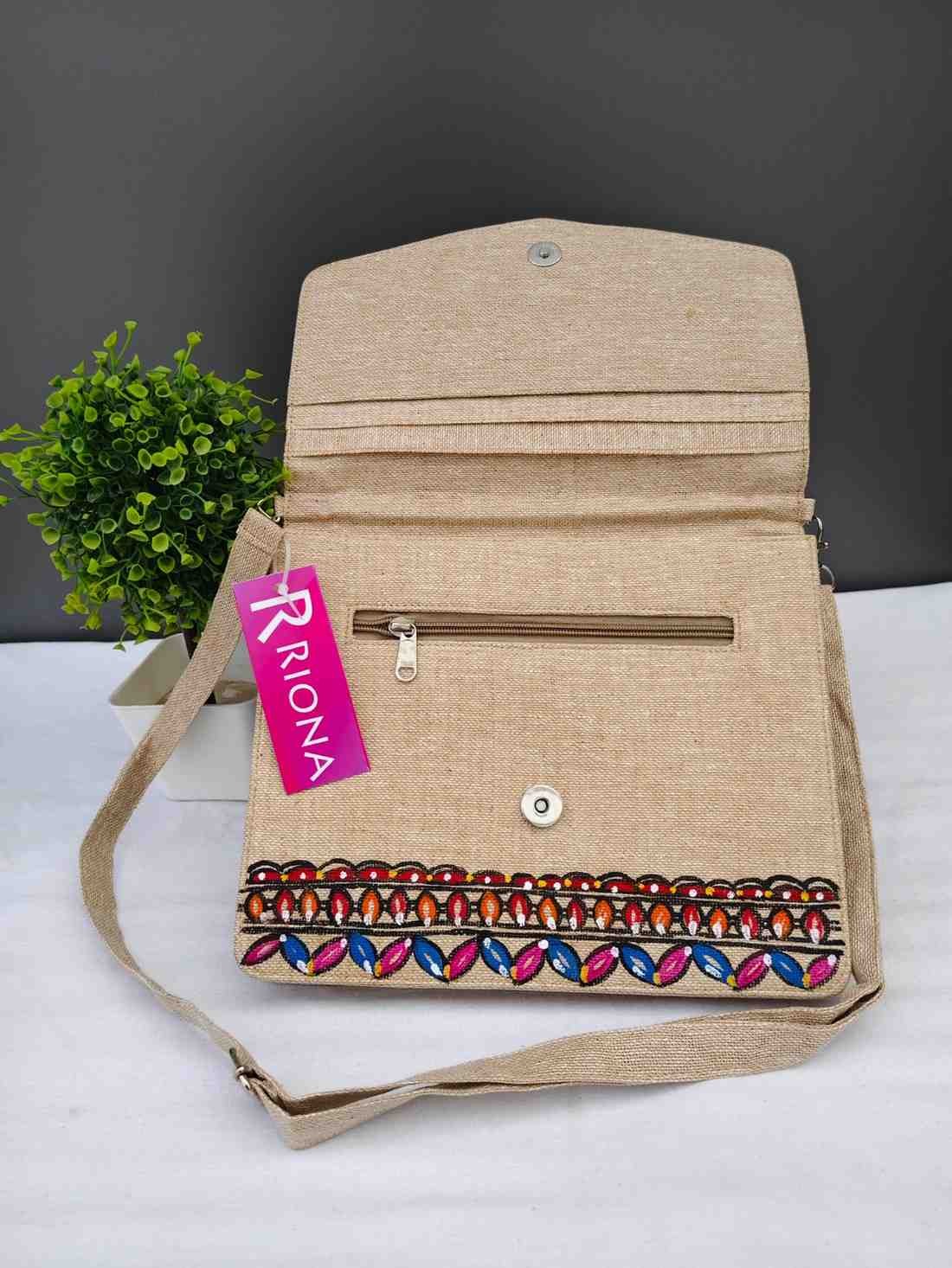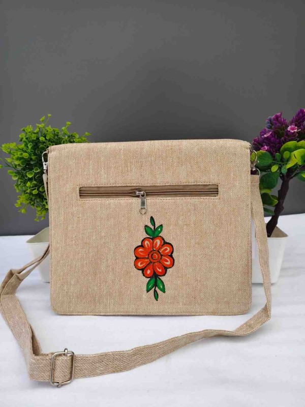 Handpainted Madhubani Jute V cut Sling Bag - Owl Design