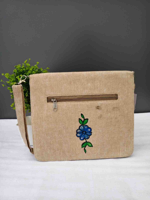 Handpainted Madhubani Jute V cut Sling Bag - Twin Fish Design