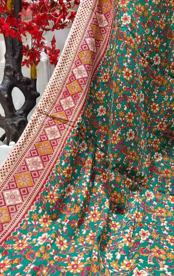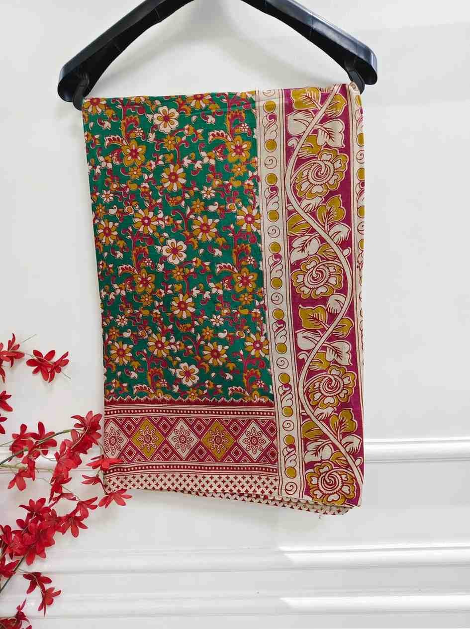 'HaritaPushp' Green Canvas cotton Kalamkari Saree