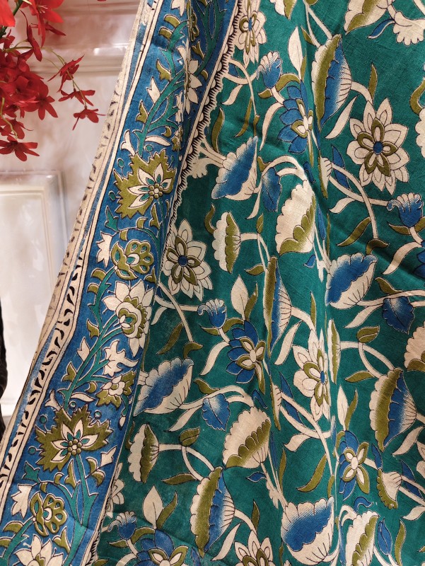 • Design: Intricate block print Kalamkari artwork
