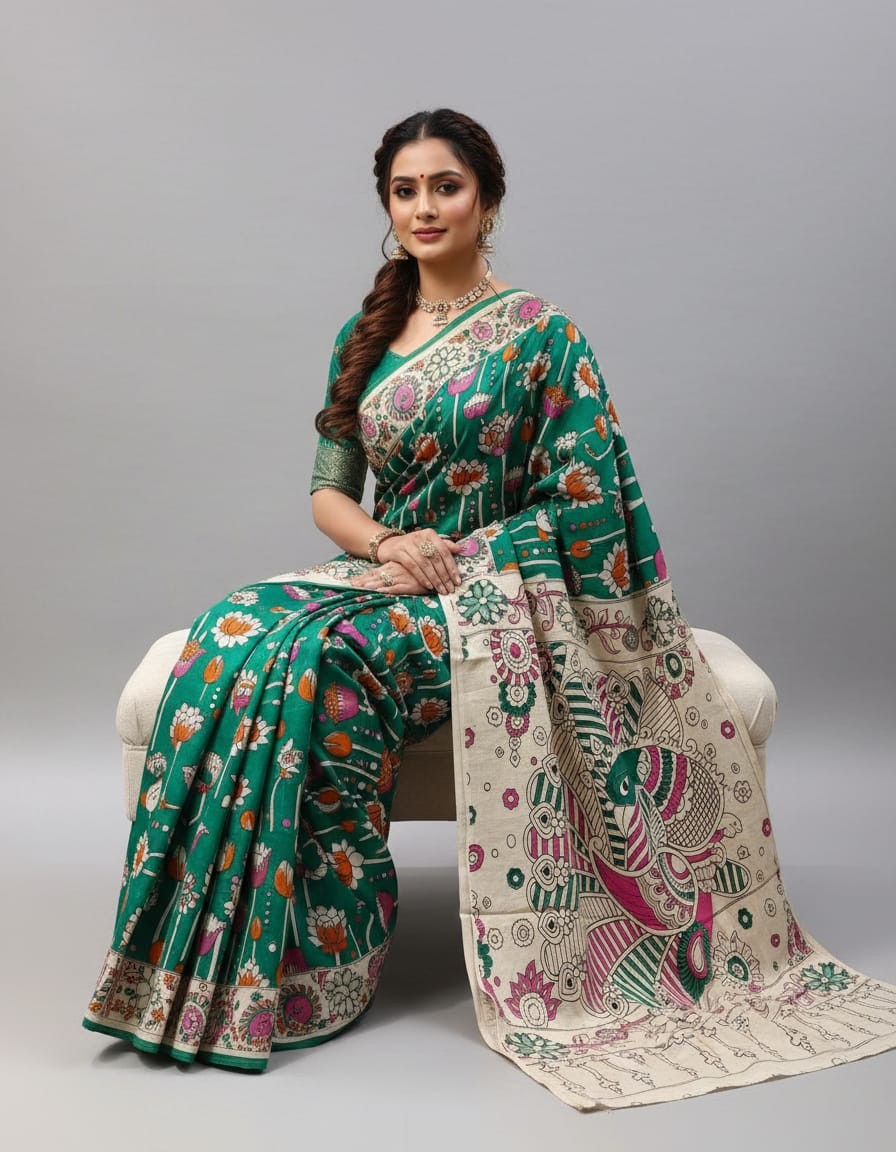• Unique Storytelling: Each saree depicts a meaningful narrative through intricate artwork.