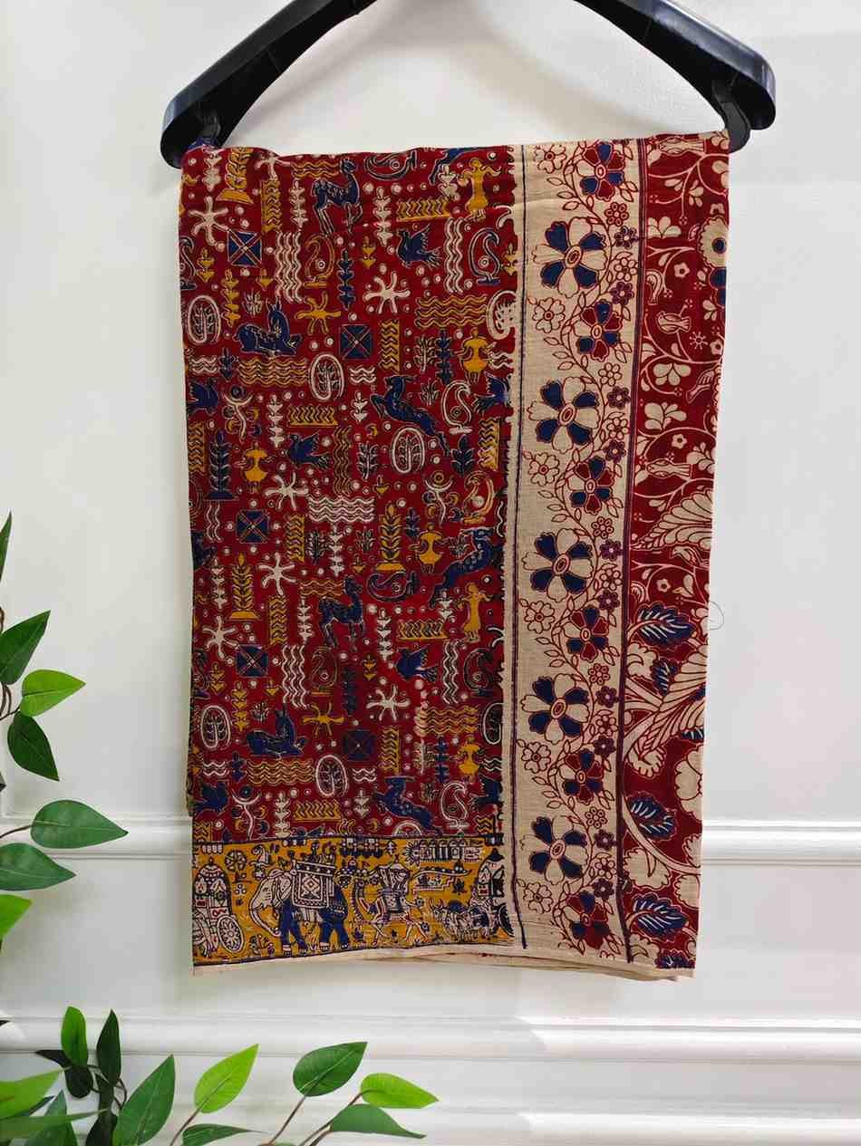 • Design: Intricate block print Kalamkari artwork